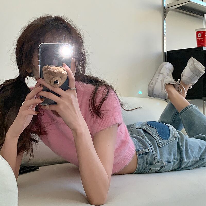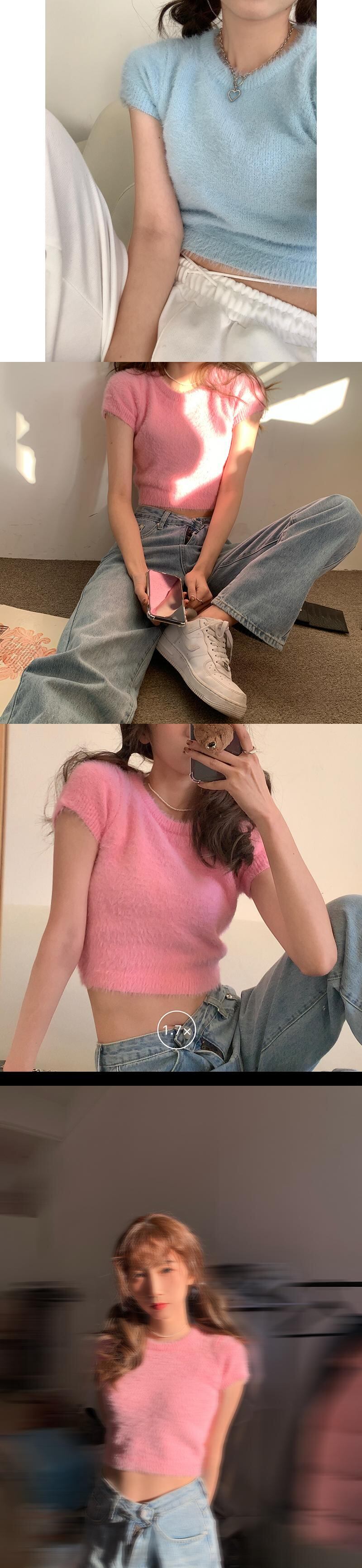 ショートスリムカラーTシャツ トップス 半袖スリーブプルオーバー ニット ハーフスリーブ ピュア misskkl365149613
