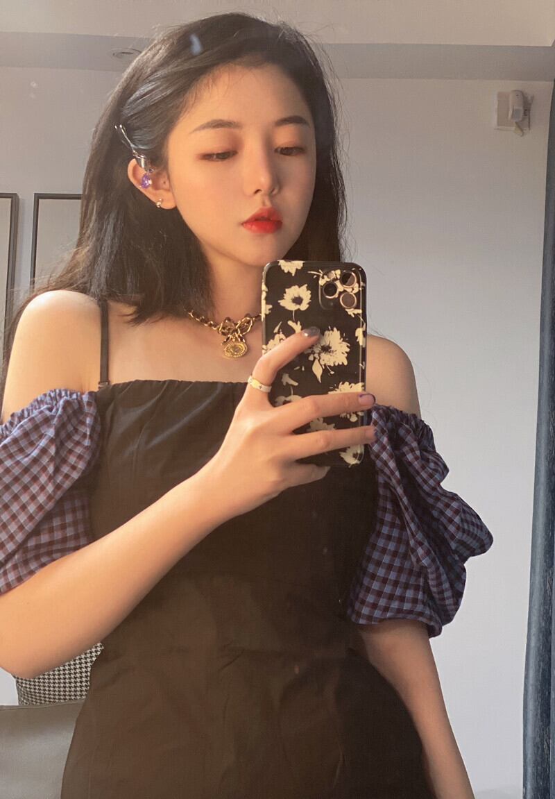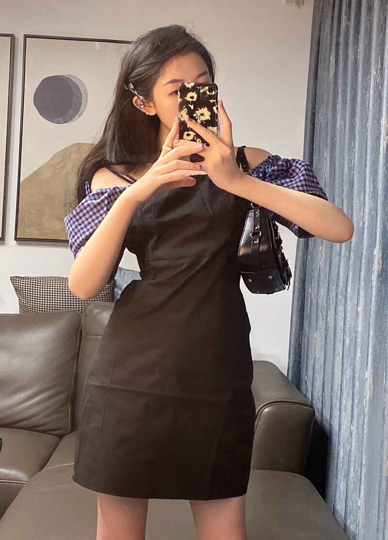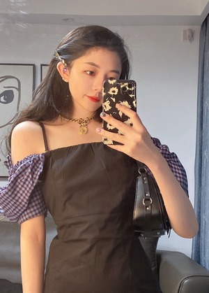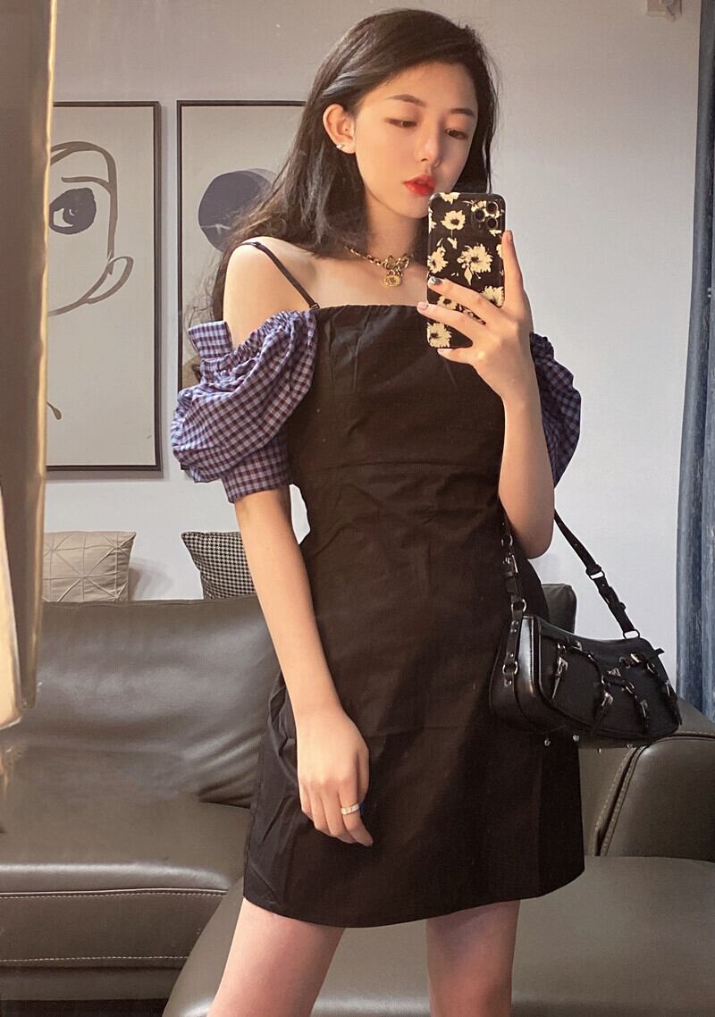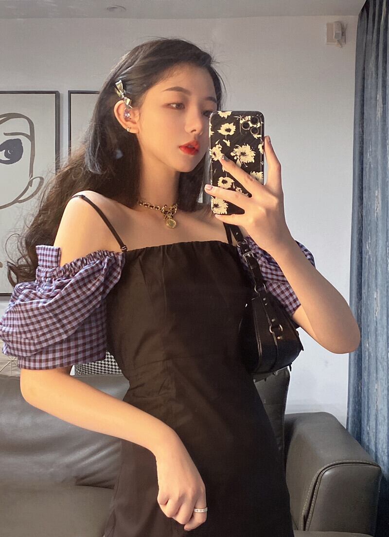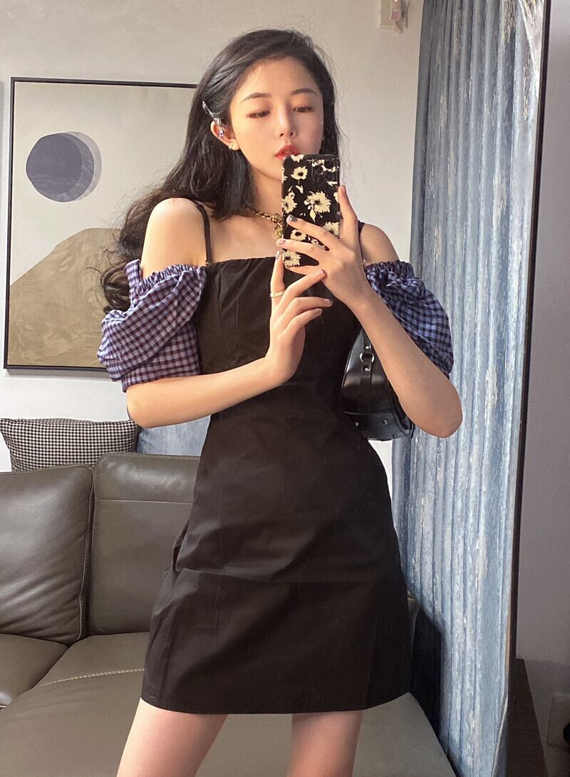 スタンダードスタイル薄手格子柄スリーブドレス レトロ 大人ガーリー スウィート キュート カジュアル スクウェア misskkl72531011053