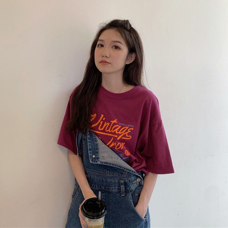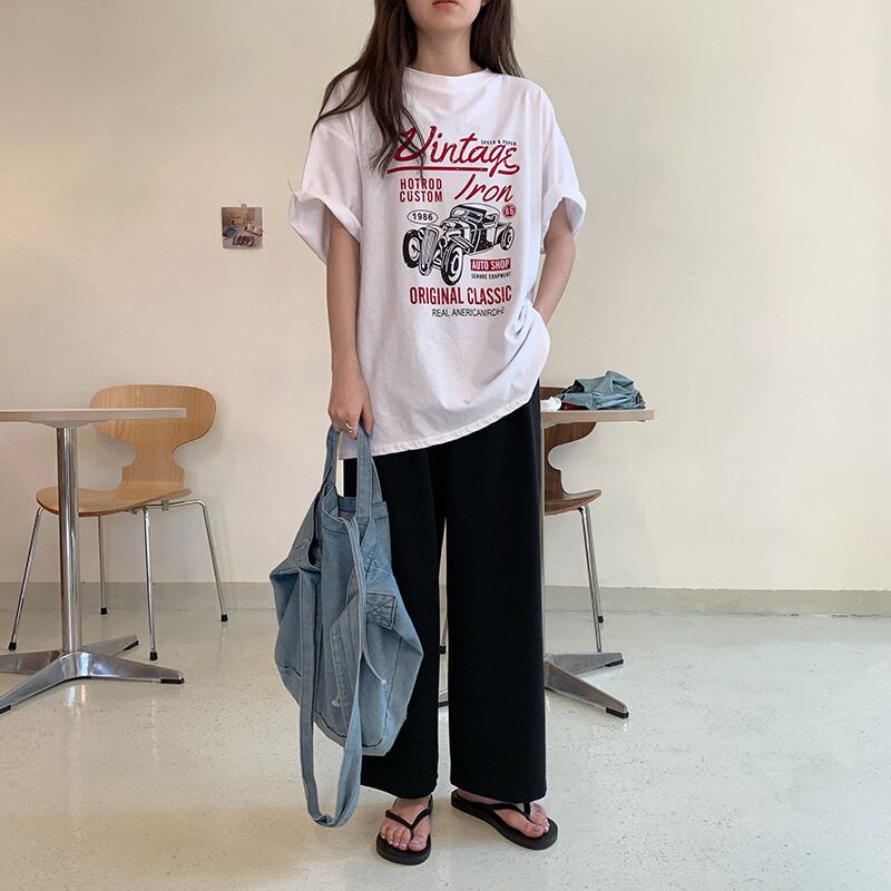 サマープリントルーズラウンドネックラインTシャツ トップス 夏物 Oネック misskkl45361339254