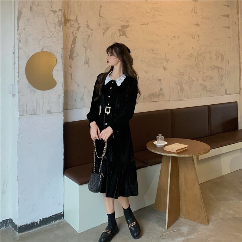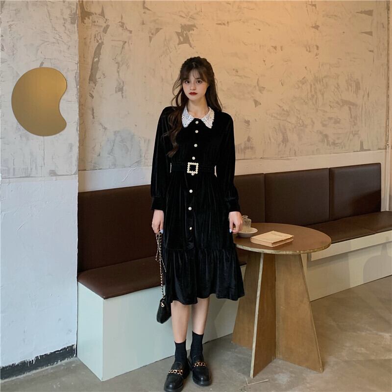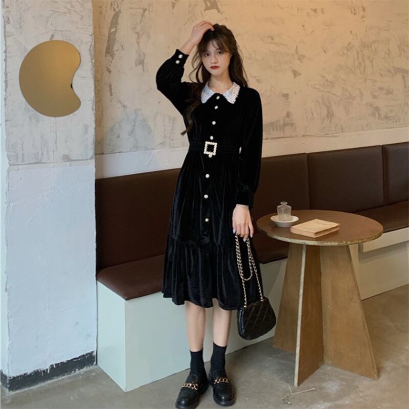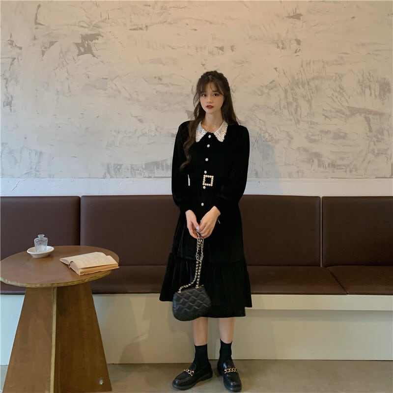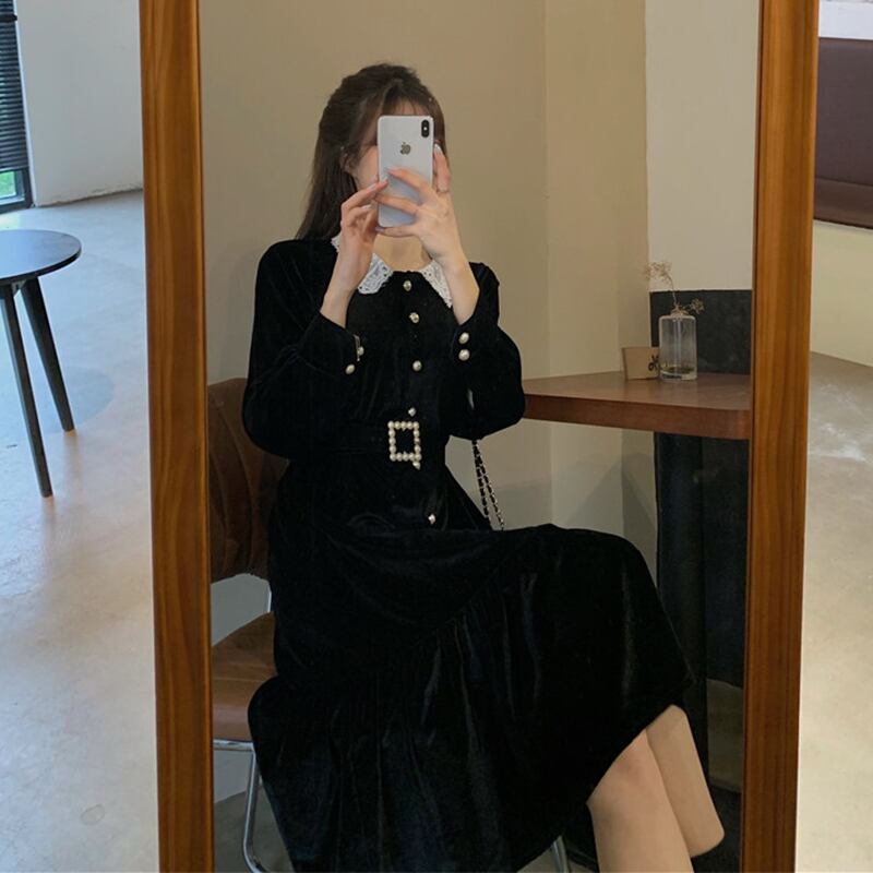 スプリングウェストベルベットドレス ロング 春物 misskkl88328960774