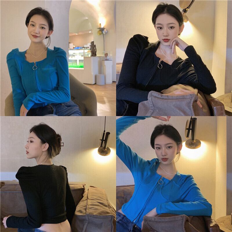 スリム薄手ジッパーカーディガンショートトップス Tシャツ レディース スクウェア misskkl99238800043