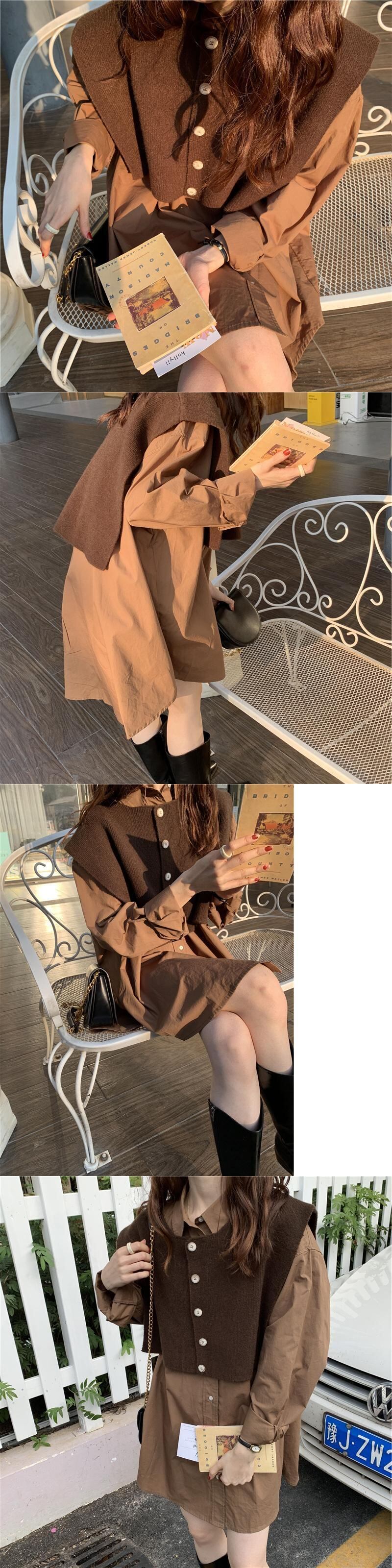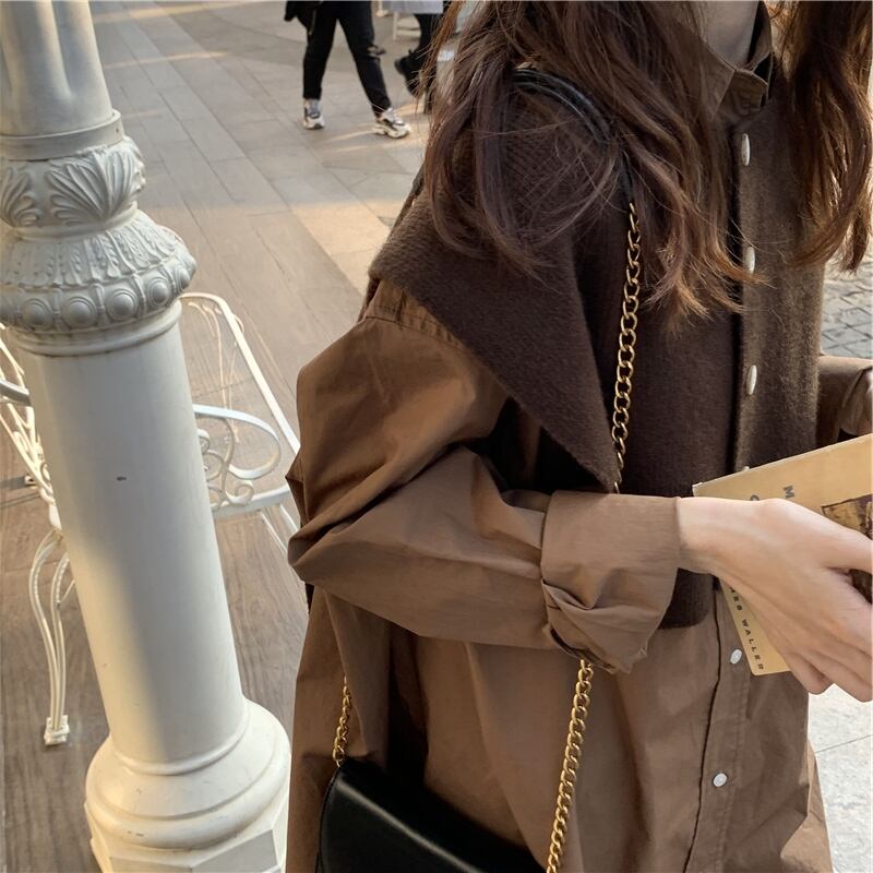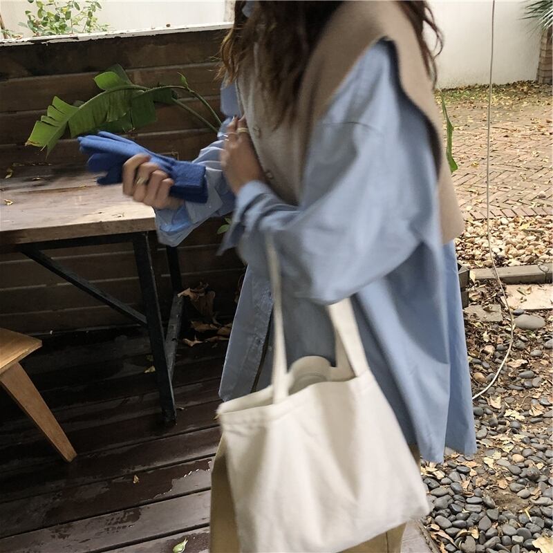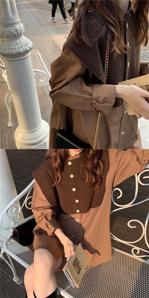 色:青いシャツ,コーヒーシャツ,ライトカーキショール,コーヒーショール