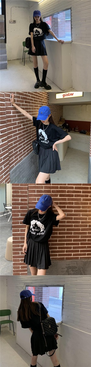 色:ホワイトTシャツシングルピース,黒のTシャツシングルピース,ブラックプリーツスカート