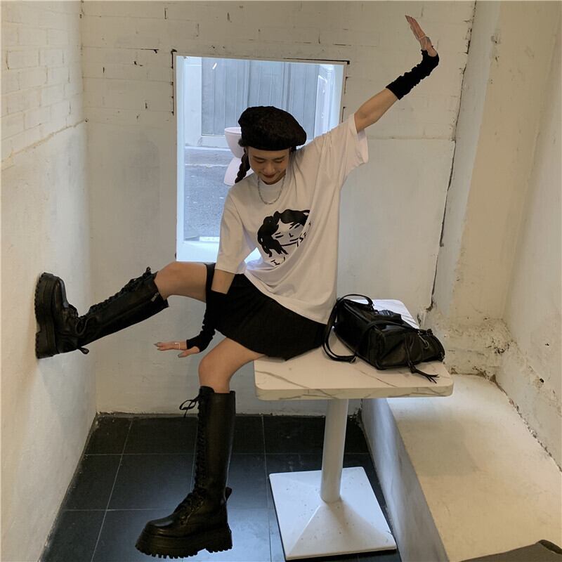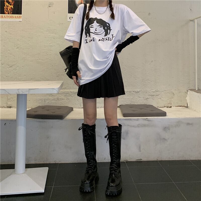 Tシャツ ルーズトップス ハイウェストプリーツスカート misskkl62891397773