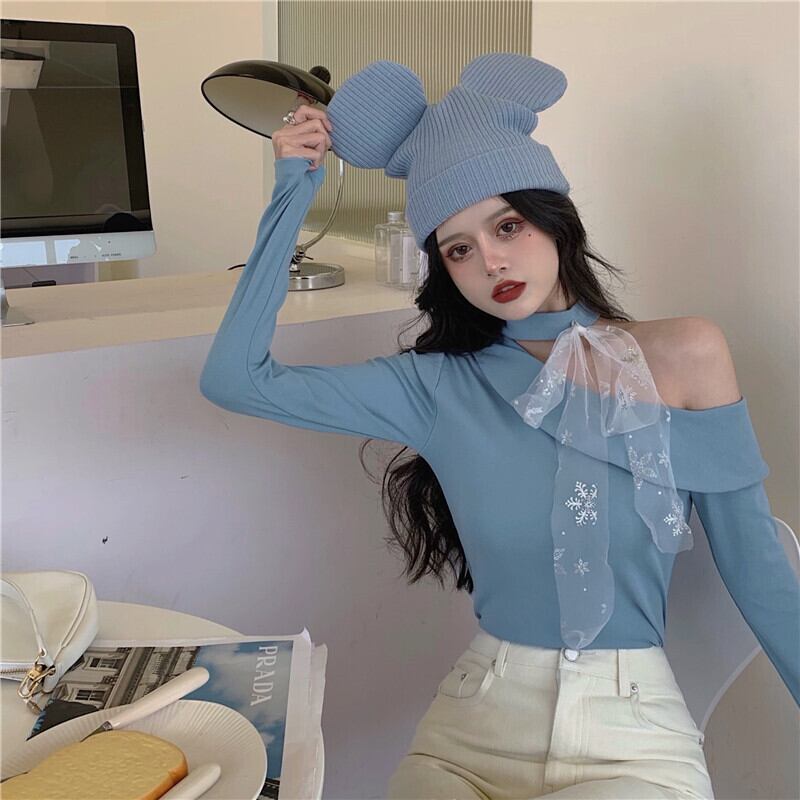 スプリングリボンストラップレスTシャツ トップス 春物 misskkl64225429247