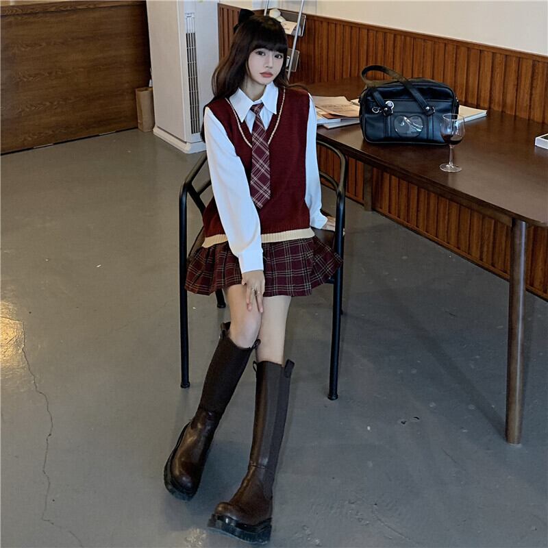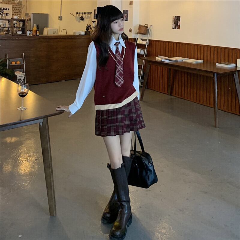 色:短いスカート,蝶ネクタイ付きシャツ,ベスト