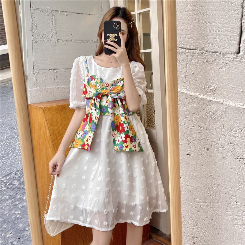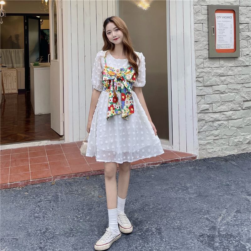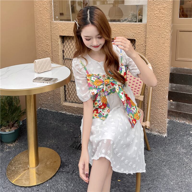 色:白いドレス,フローラルストラップ