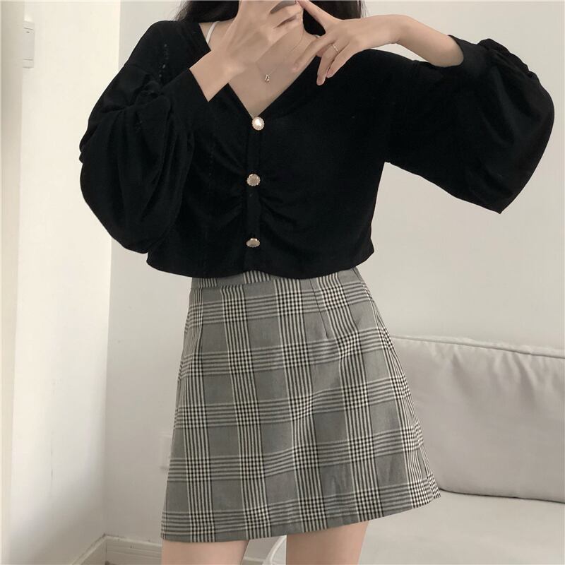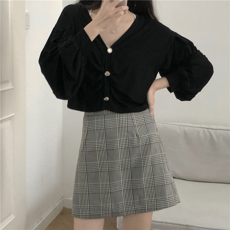 ボタントップス 格子柄スカート レトロ misskkl52280610862