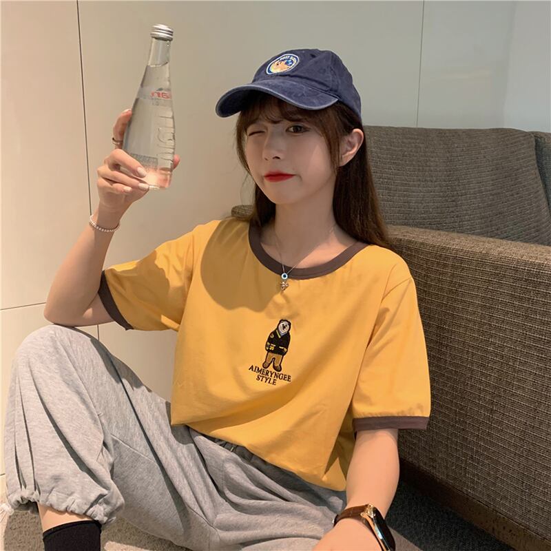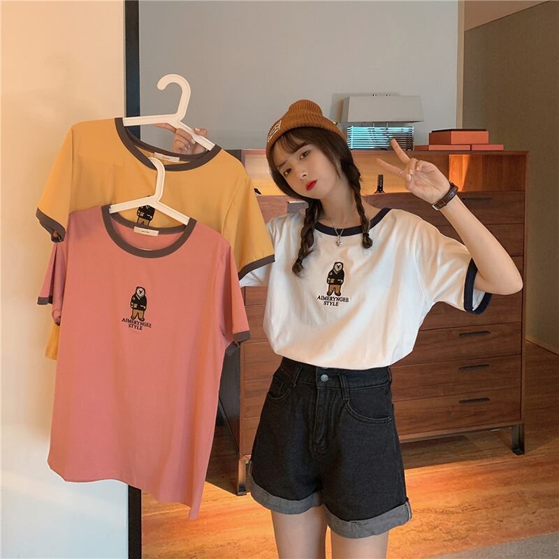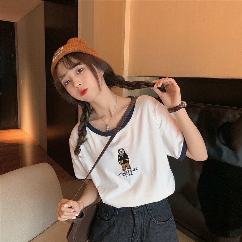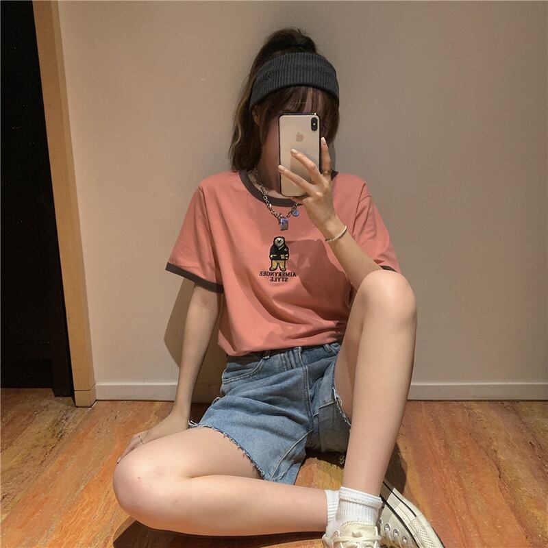 サマーカラールーズヴィンテージ刺繍Tシャツ トップス レディース 夏物 ビンテージ misskkl30230678172