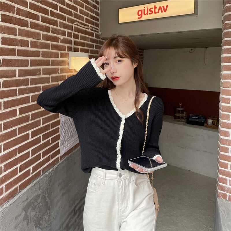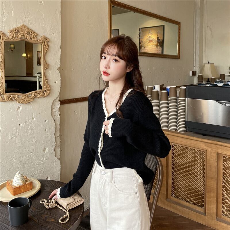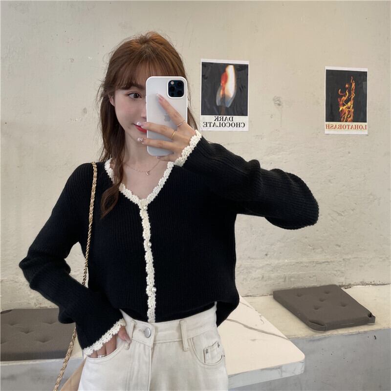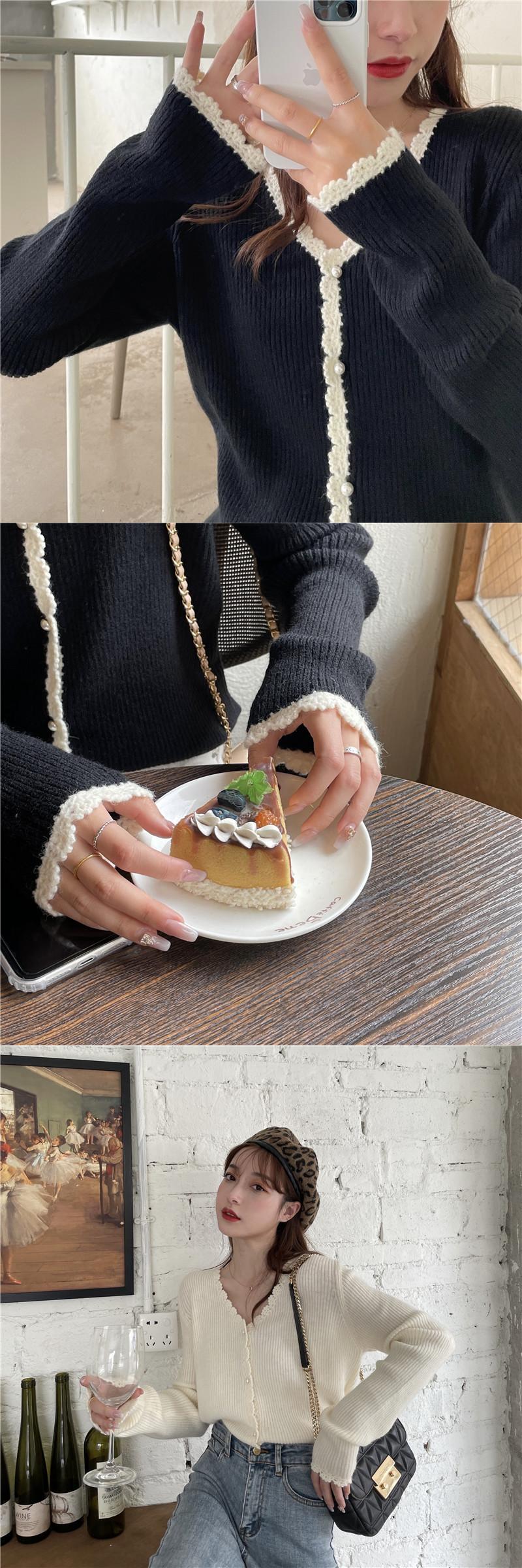スプリングオータムスタイルルーズレースVネックニットカーディガントップス ロング 春物 秋物 ステッチ misskkl97755121695