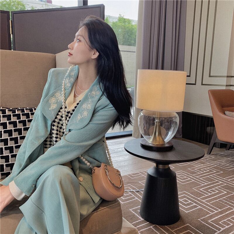 スプリングオータムスタンダード刺繍コーデュロイルーズジャケット レディース ロング レトロ ストリート 春物 秋物 misskkl95083406049