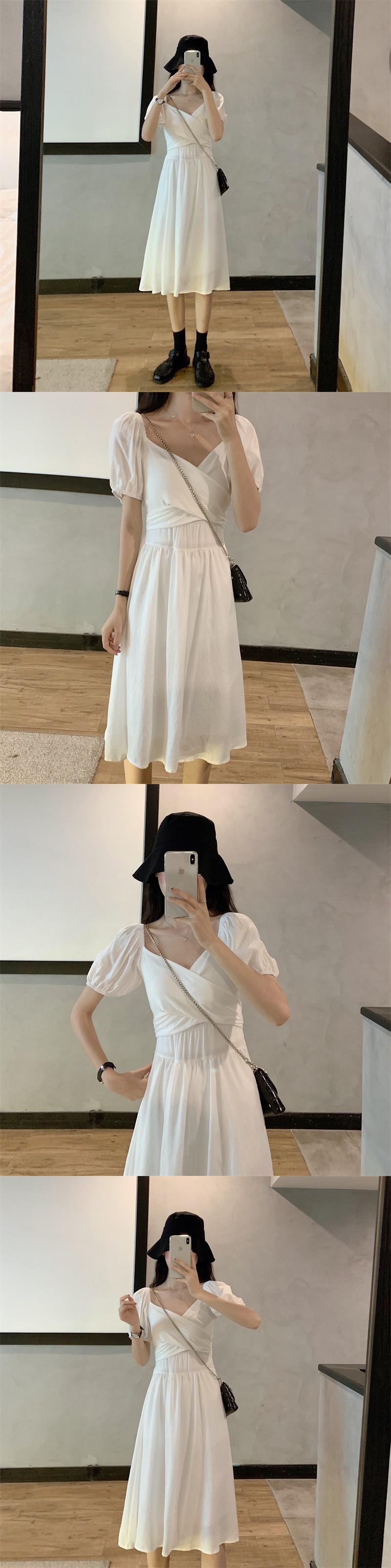 スプリングスタイルウェストリボンVネック半袖スリーブドレス レディース ショート ハーフスリーブ 春物 misskkl59362014470