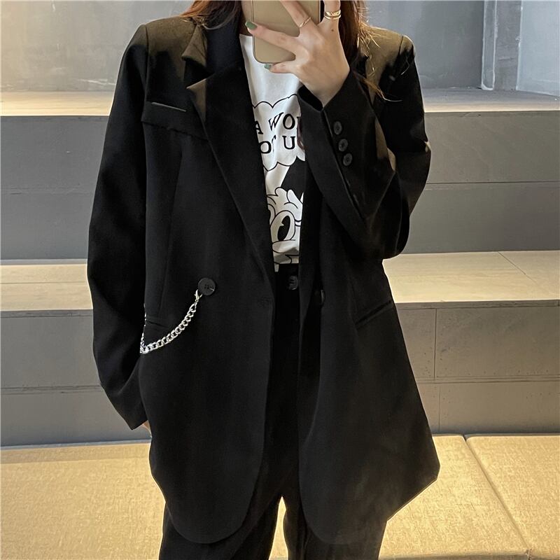 スプリングオータムスタンダードスタイルチェーン ルーズジャケット ロング レトロ 春物 秋物 misskkl48476345590