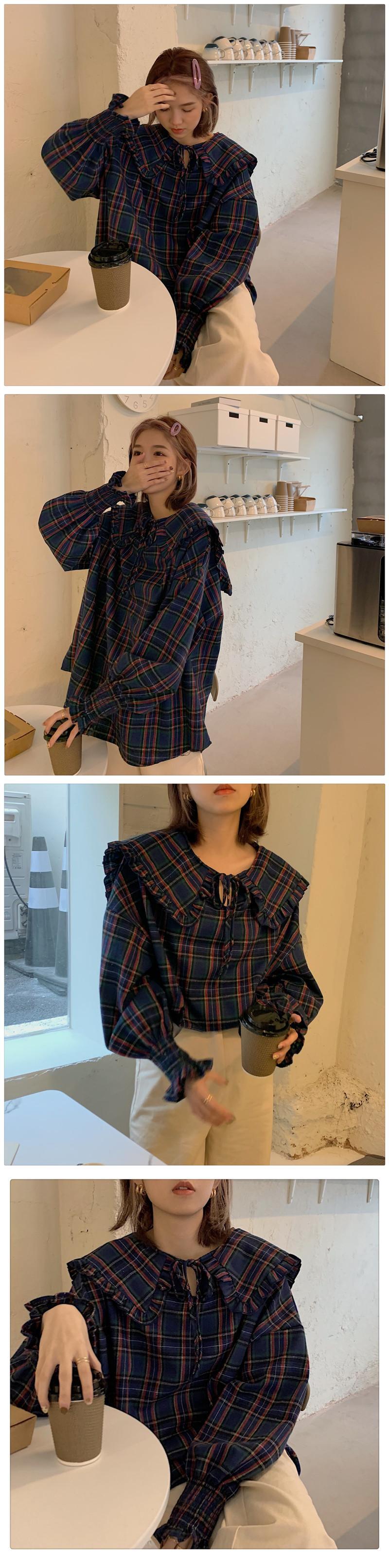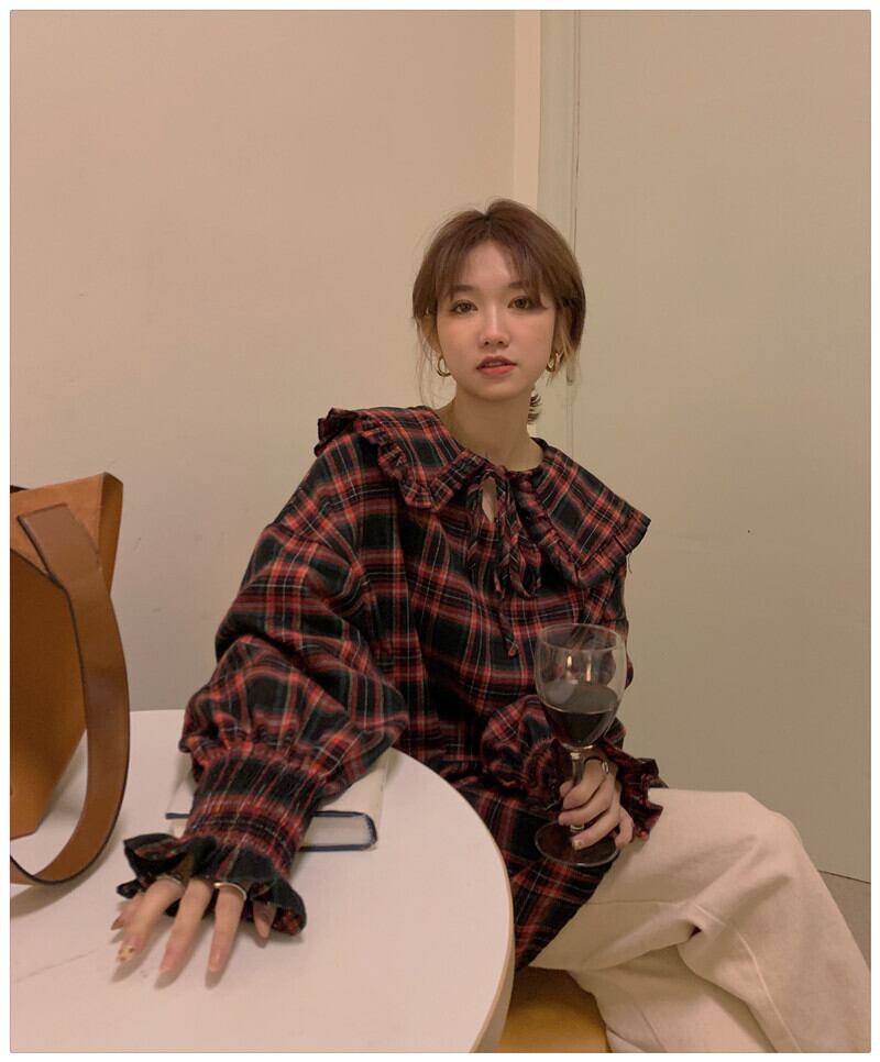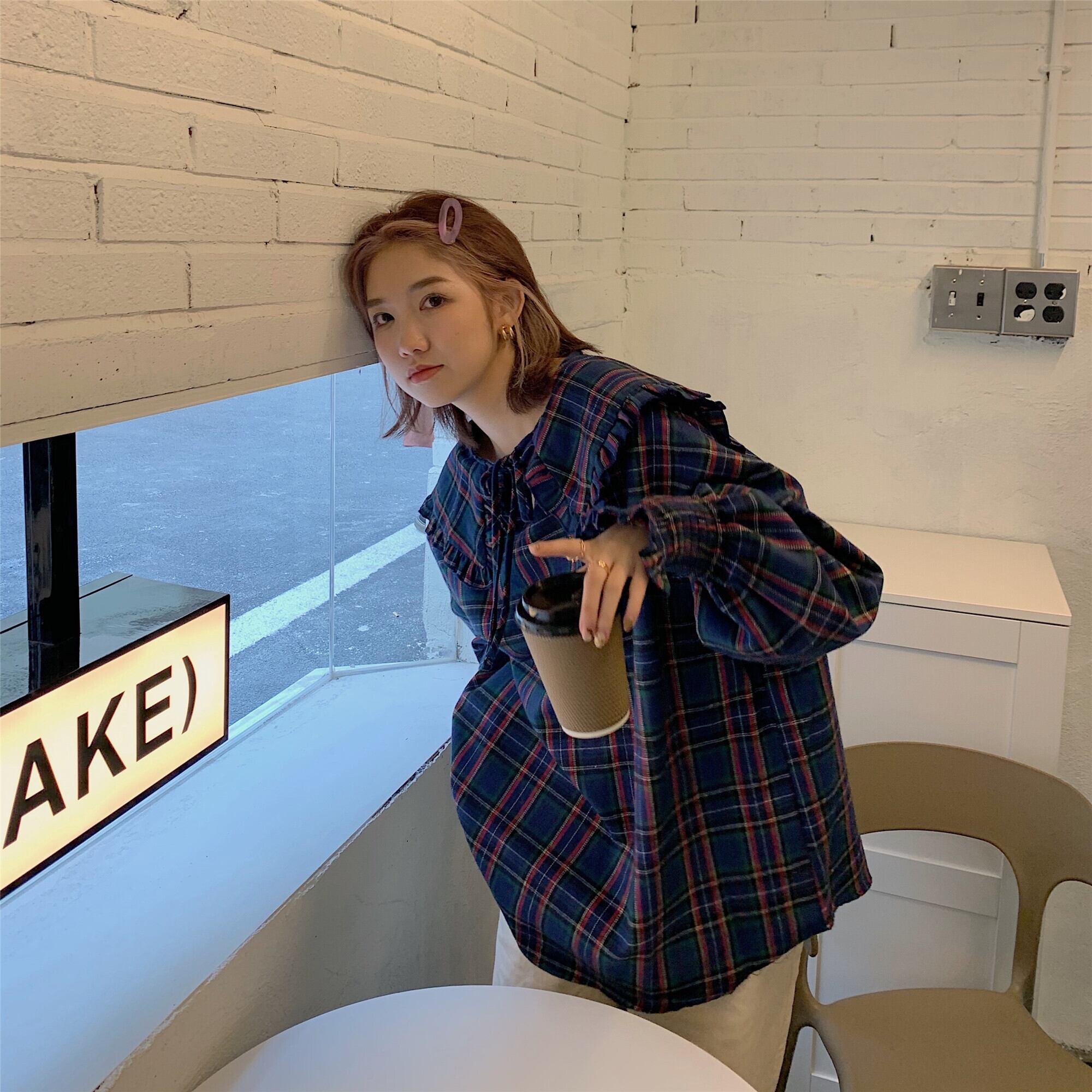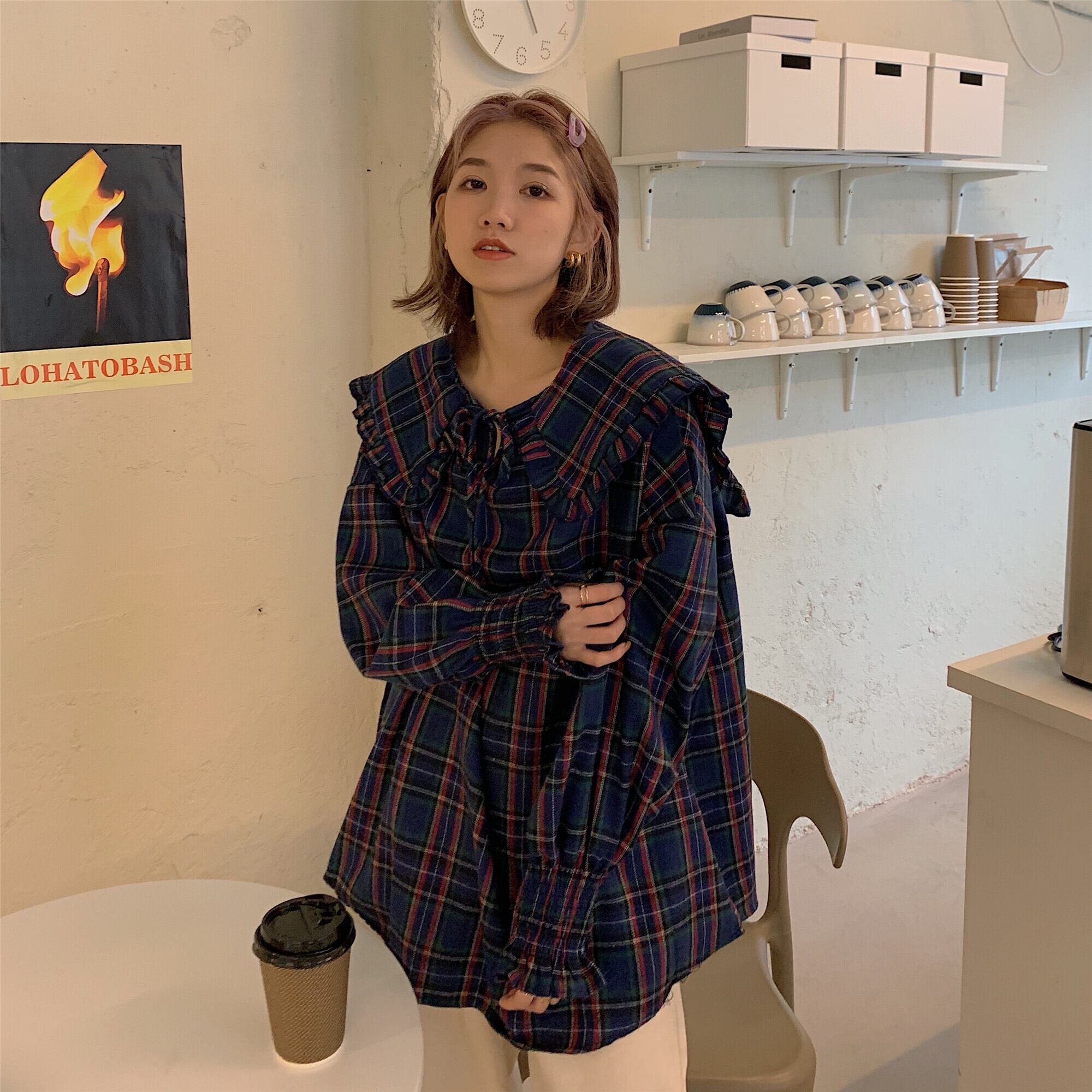 スプリングオータムスタンダード格子柄ルーズシャツ スタイル ロング レトロ 春物 秋物 misskkl77557243543