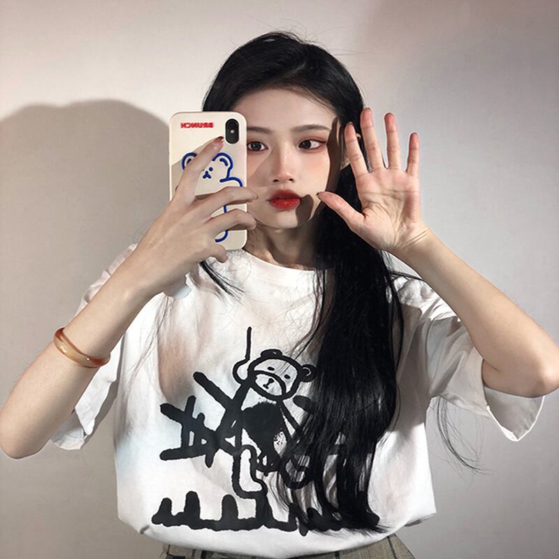 サマールーズラウンドネックプルオーバー プリントTシャツ トップス 夏物 Oネック misskkl27652710706