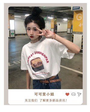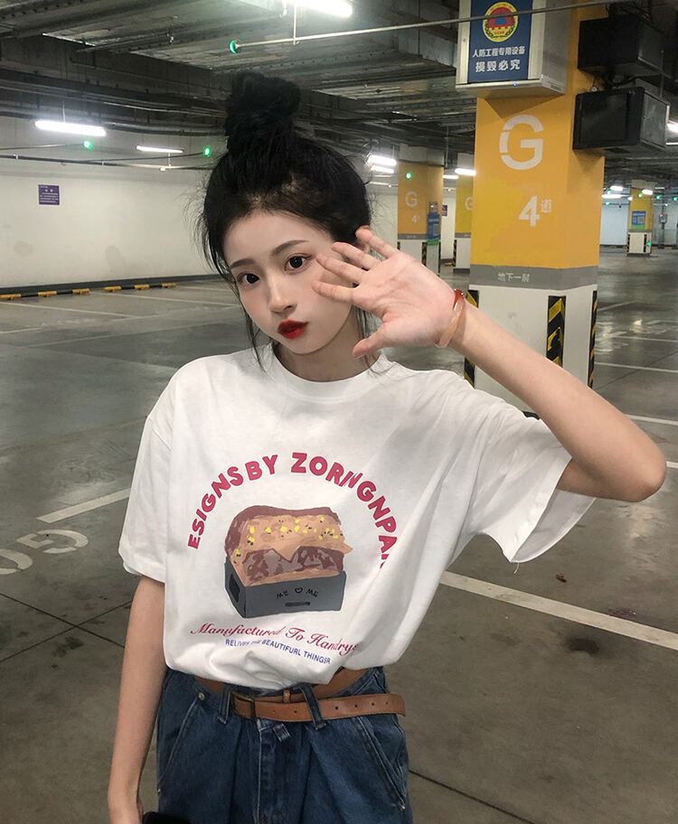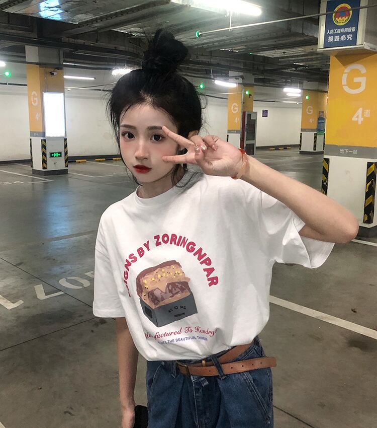 ヴィンテージTシャツ ルーズサマープリント柄ホワイト 夏物 ビンテージ misskkl54707526106
