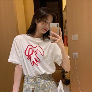 ホワイトショートTシャツ サマールーズプリント柄 大人ガーリー スウィート キュート カジュアル 夏物 misskkl88039784855