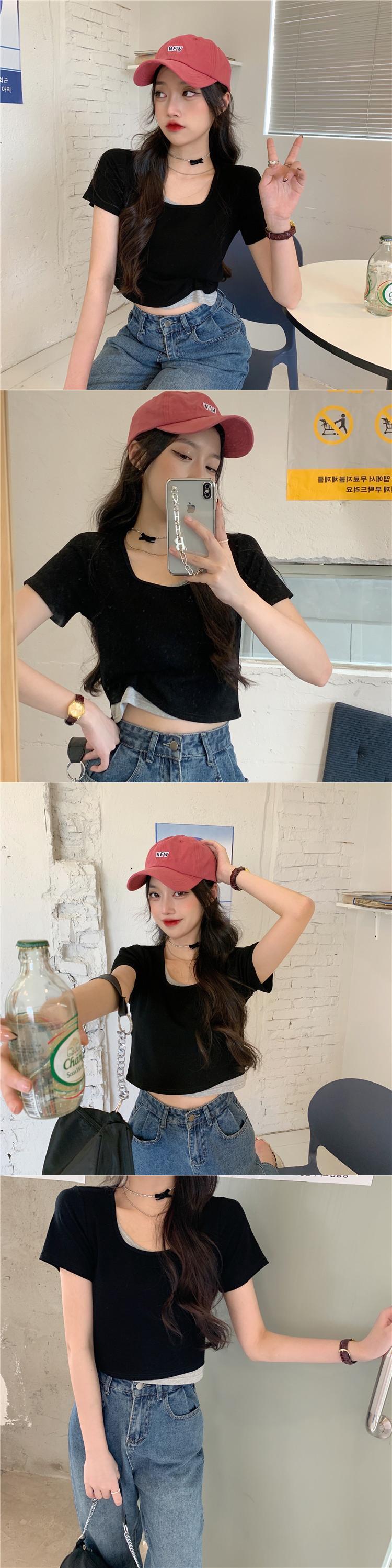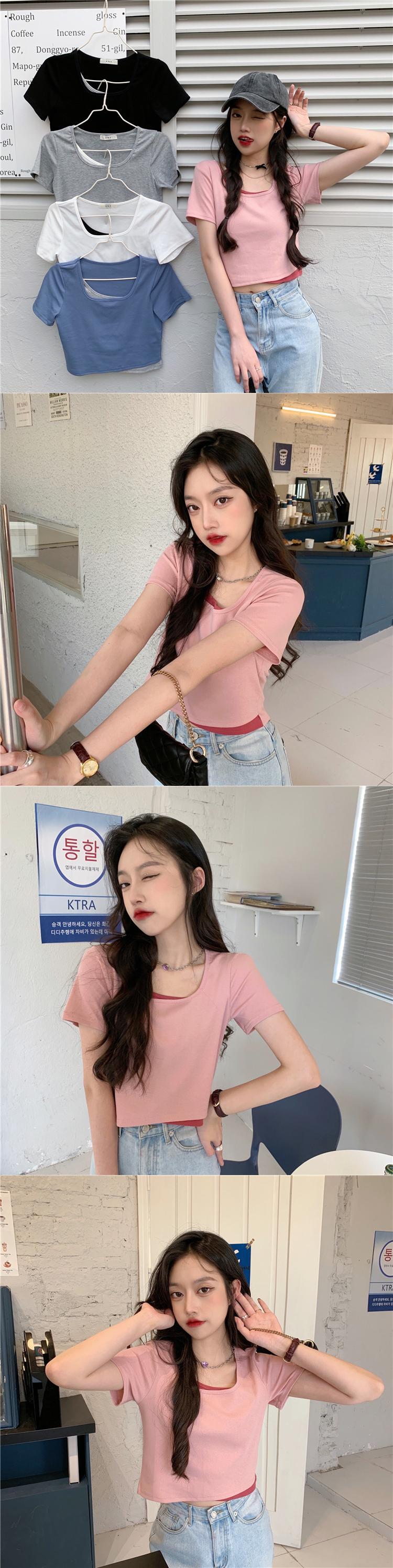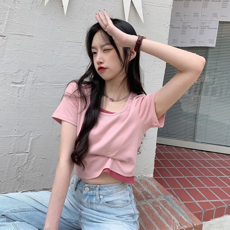 ショートトップス サマーハイウェストウェストツーピーススタイル半袖スリーブTシャツ ハーフスリーブ 大人ガーリー スウィート キュート カジュアル 夏物 misskkl84612153247