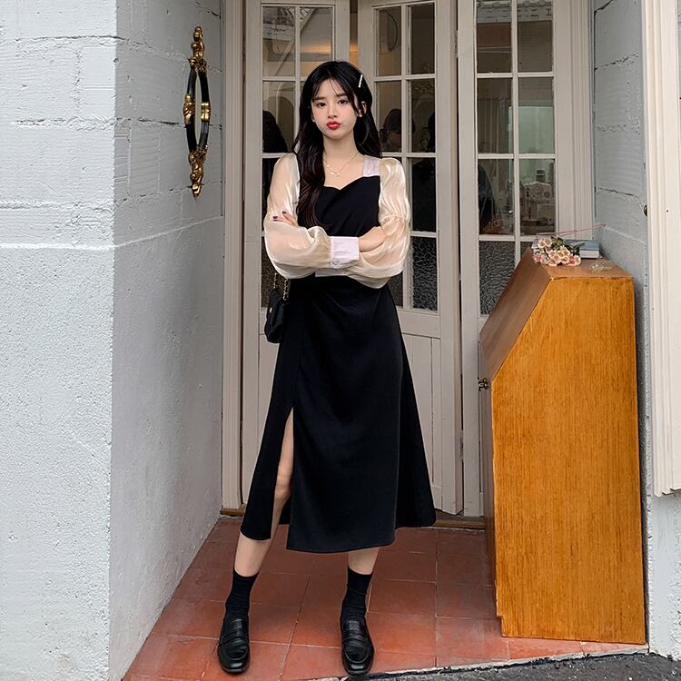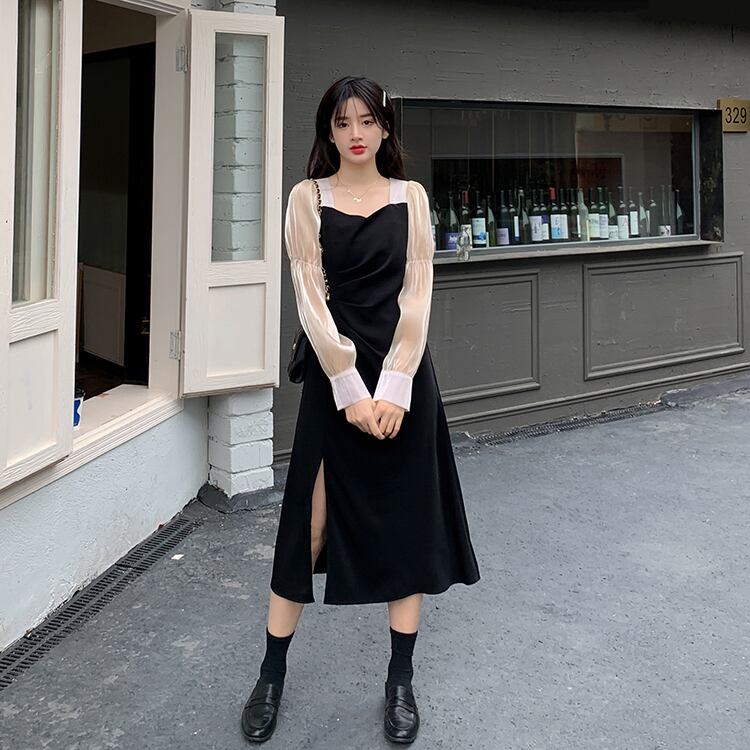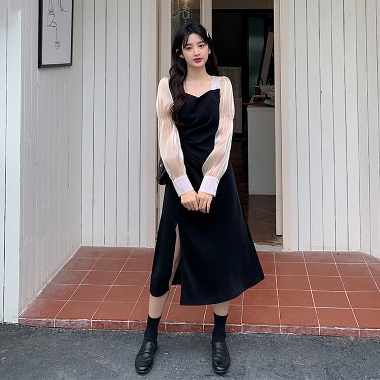ドレス スプリングオータムスタンダードスカート ロング レトロ 春物 秋物 misskkl75887192702