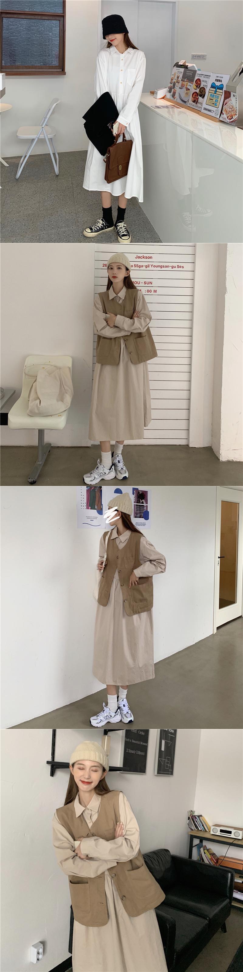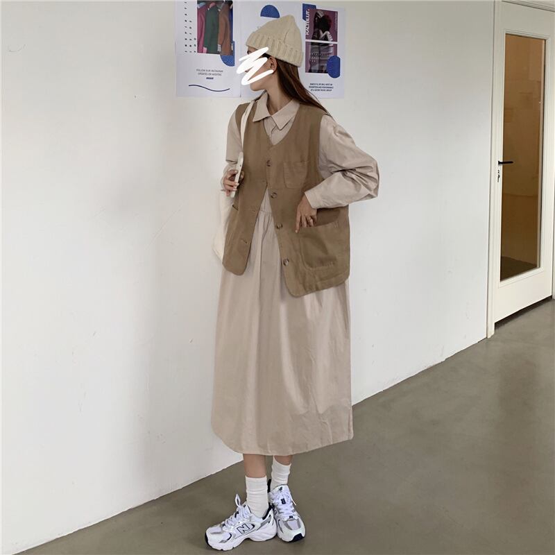 色:アプリコットドレス,白いドレス,カーキ一枚,ブラックベストワンピース