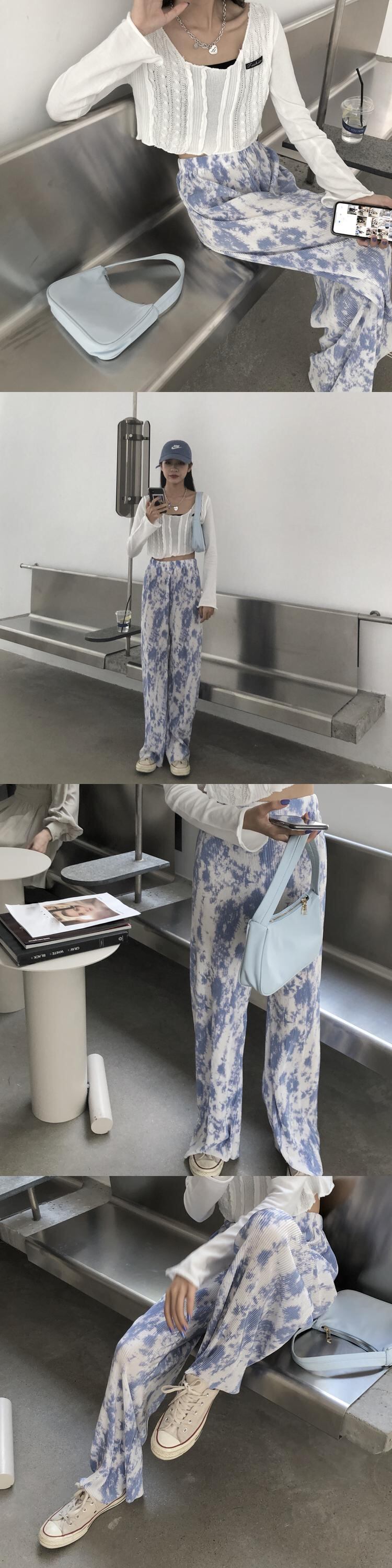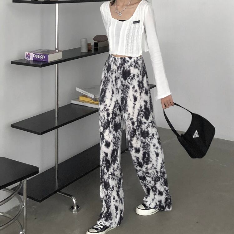 ワイドレッグパンツ サマープリントカジュアル薄手スタンダードスタイル レトロ 夏物 ワイドパンツ misskkl99147407526