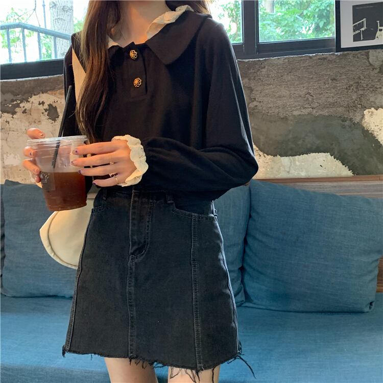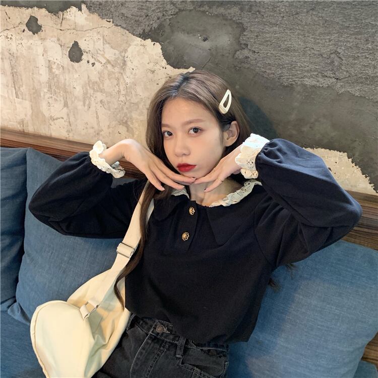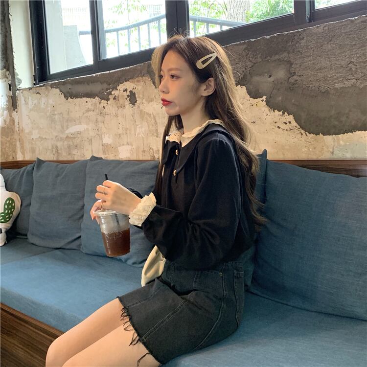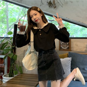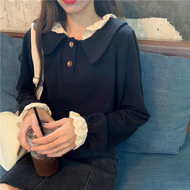 スプリングスタンダードスタイルレースルーズシャツ トップス ロング レトロ 春物 ステッチ misskkl8737511263