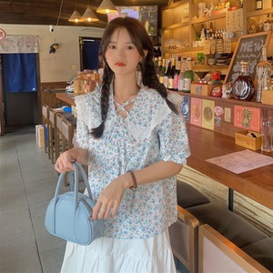 ブラウス サマースタイルレースカラーフローラルルーズシャツ レディース 大人ガーリー スウィート キュート カジュアル 夏物 花柄 misskkl44168891949