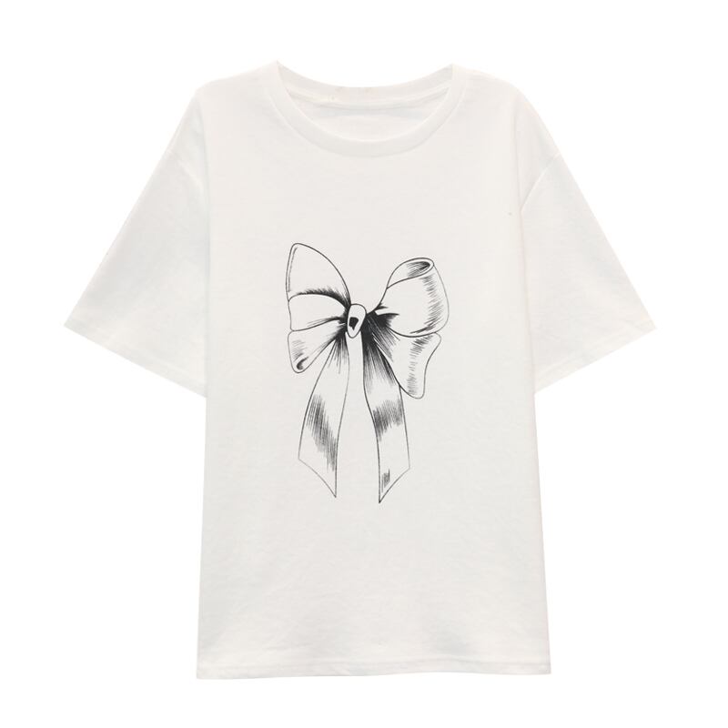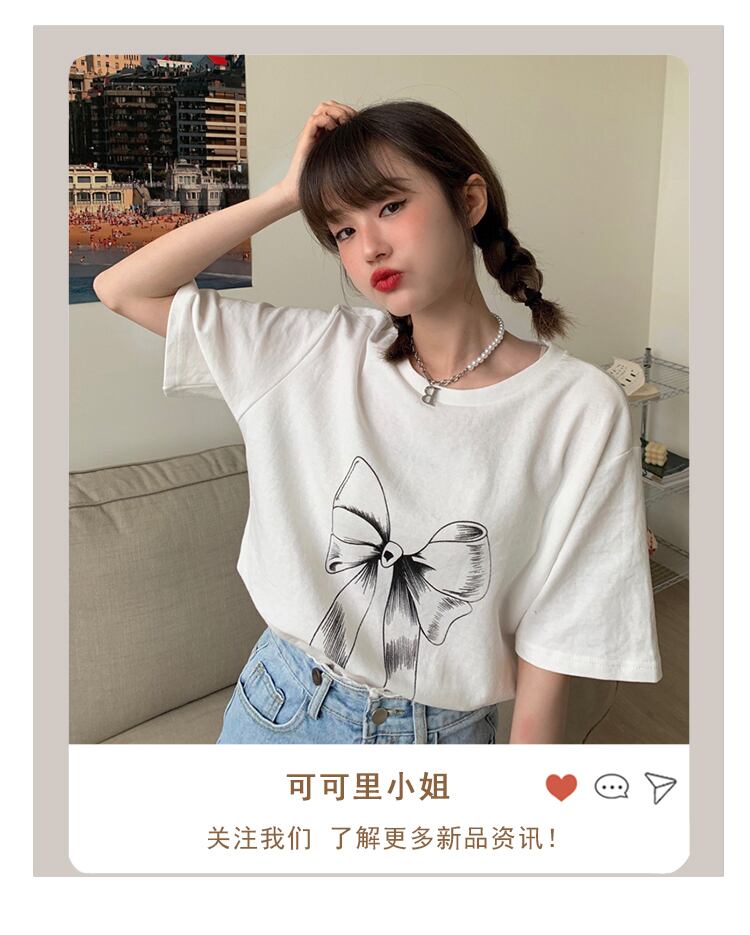 サマースタンダードプリントルーズTシャツ トップス レトロ 夏物 misskkl24271679233