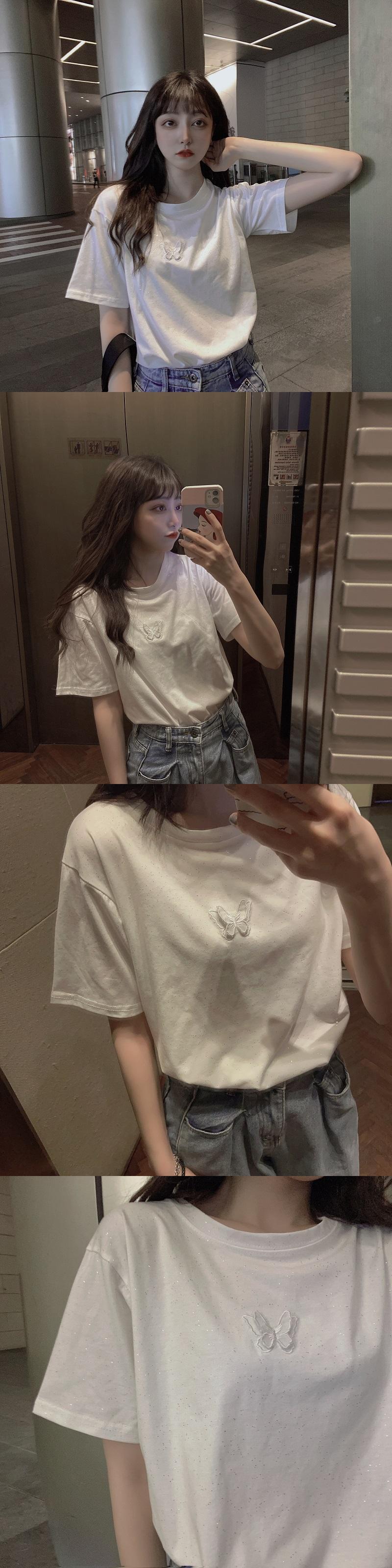 サマーButterflyデザイン 薄手Tシャツ トップス 夏物 misskkl6912155633