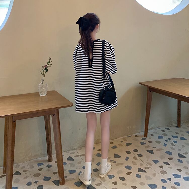 サマールーズストライプホルタースリーブTシャツ トップス レディース 夏物 misskkl91679953612