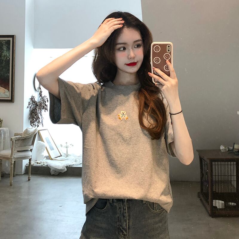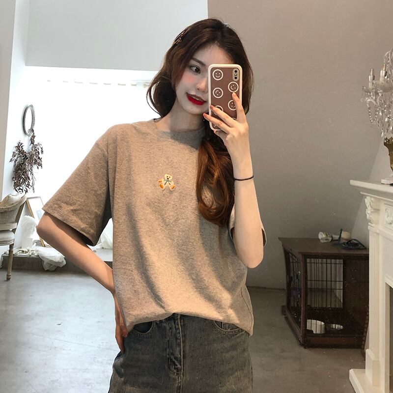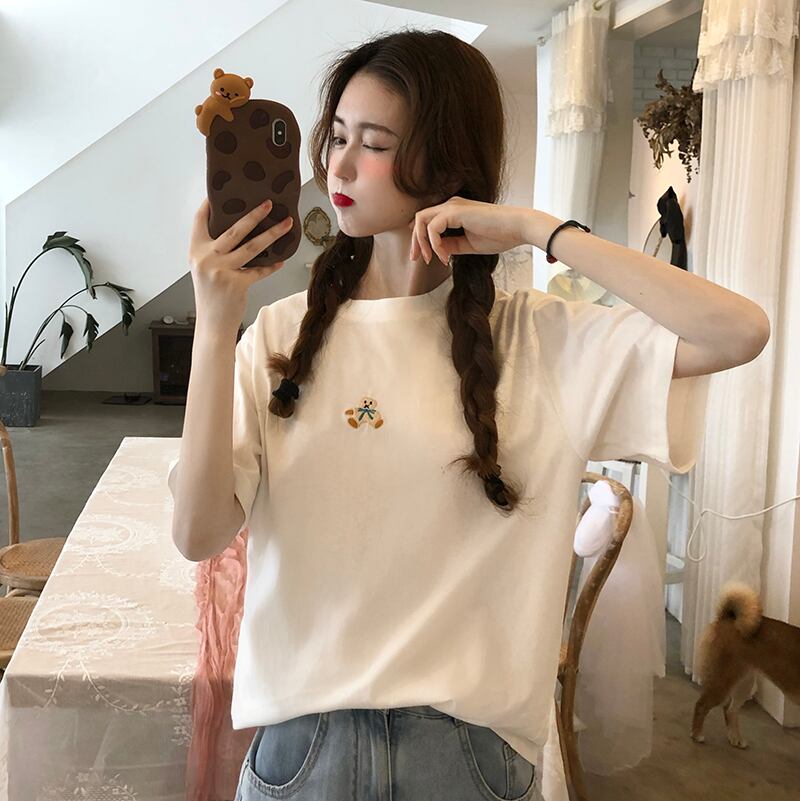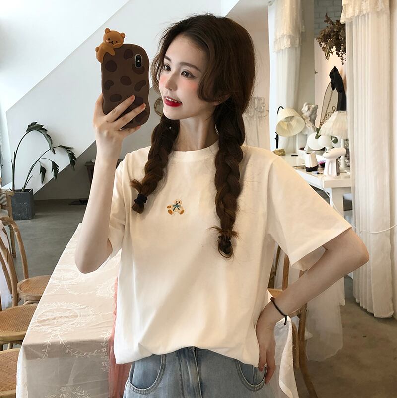 サマー刺繍ラウンドネックルーズホワイトTシャツ トップス レディース 大人ガーリー スウィート キュート カジュアル 夏物 Oネック misskkl97252422110