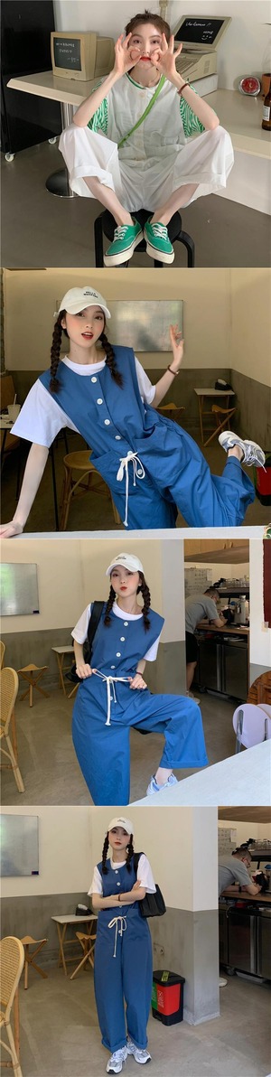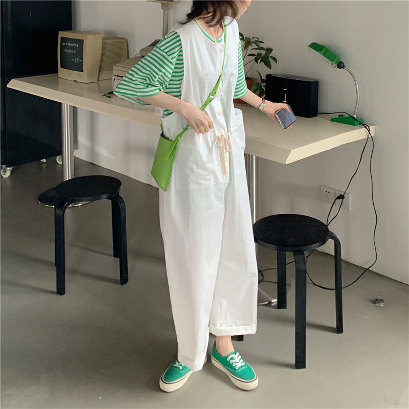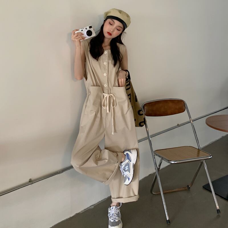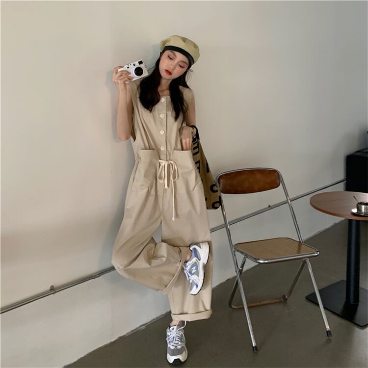 サマースタンダードギャザールーズパンツ カジュアルジャンプスーツ オールインワン レトロ 夏物 misskkl58214722030