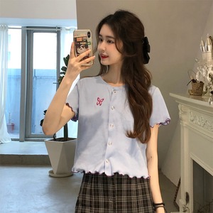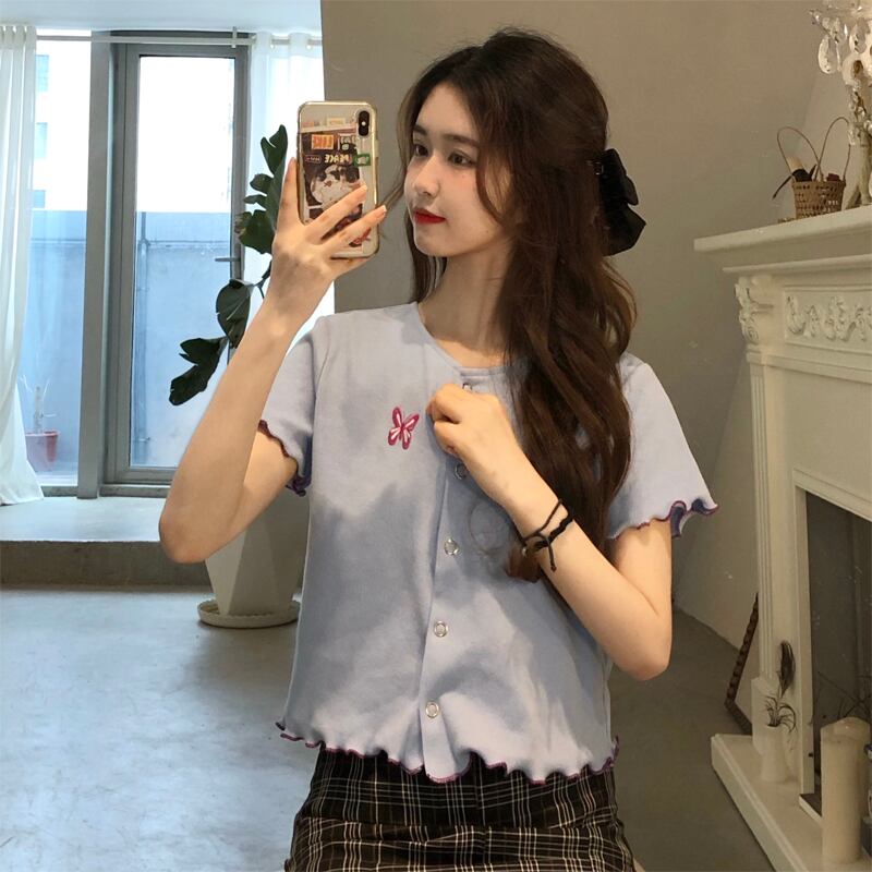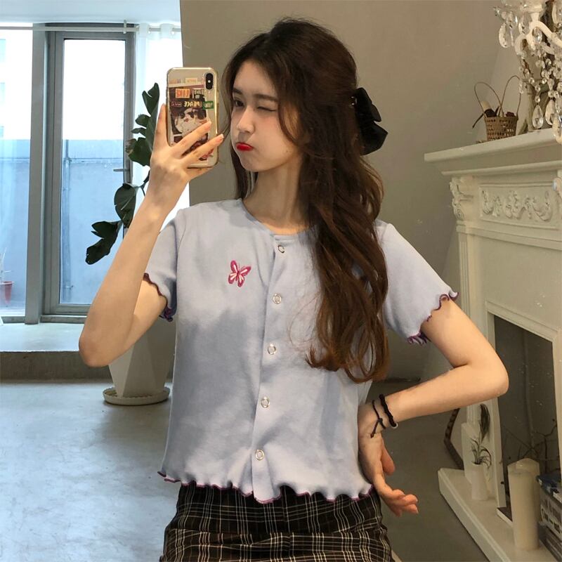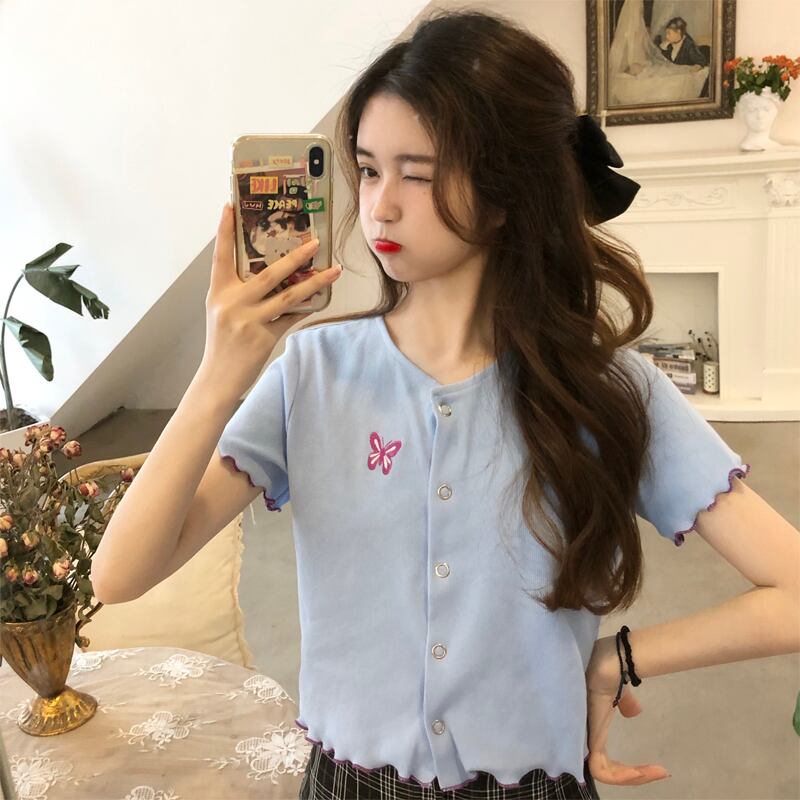 サマースリムショートButterflyデザイン 刺繍Tシャツ トップス ロング 夏物 misskkl15994043859