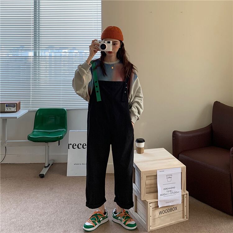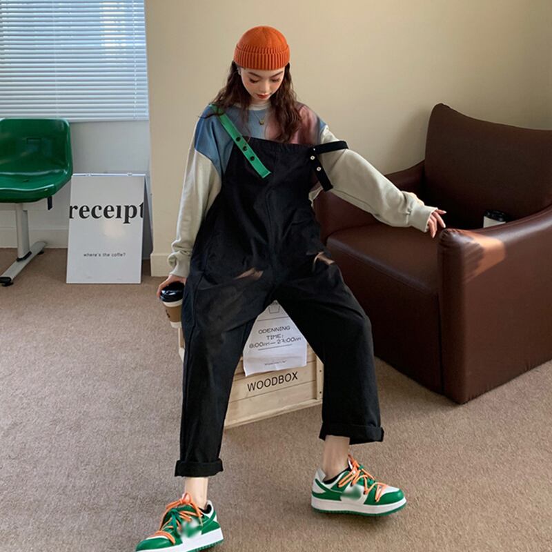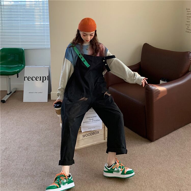 スプリングオータムスタンダードスタイルカラールーズハイウェストウェストワンピースカジュアルパンツ レディース レトロ 春物 秋物 misskkl82384357810