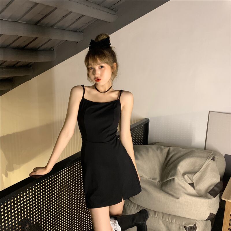 スプリングAラインソリッド カラーブラックドレス 春物 ソリッドカラー misskkl24983550383