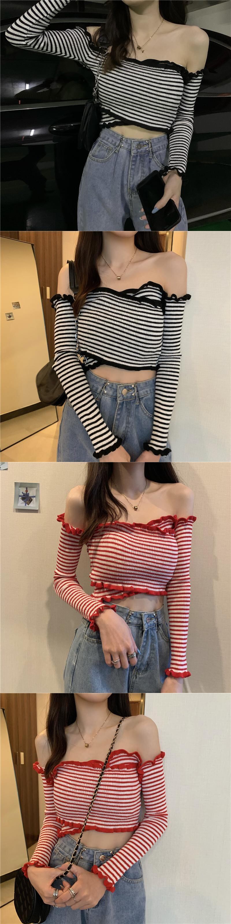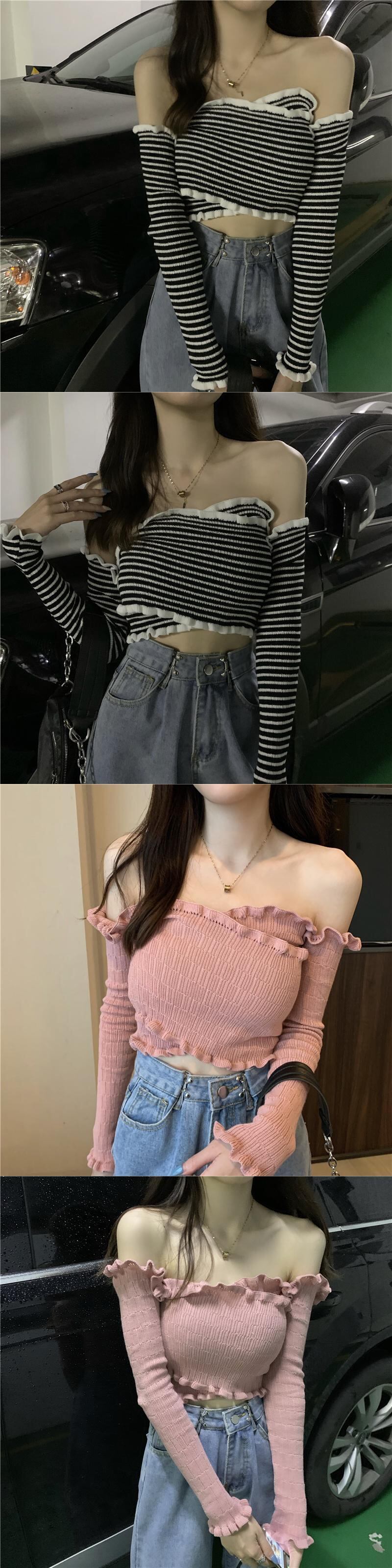 スプリングスリムショートストライプセーター トップス レディース ロング 春物 misskkl4515024444