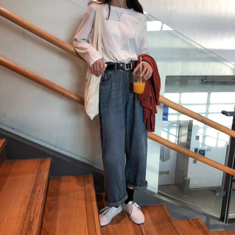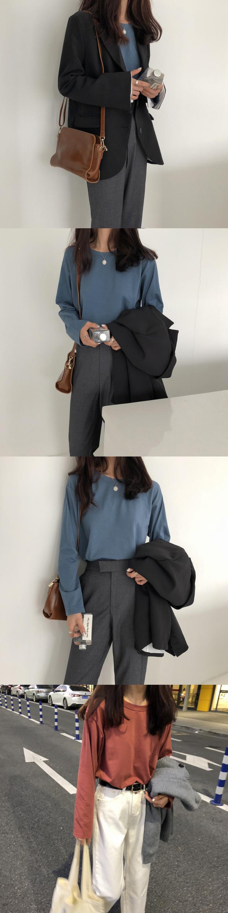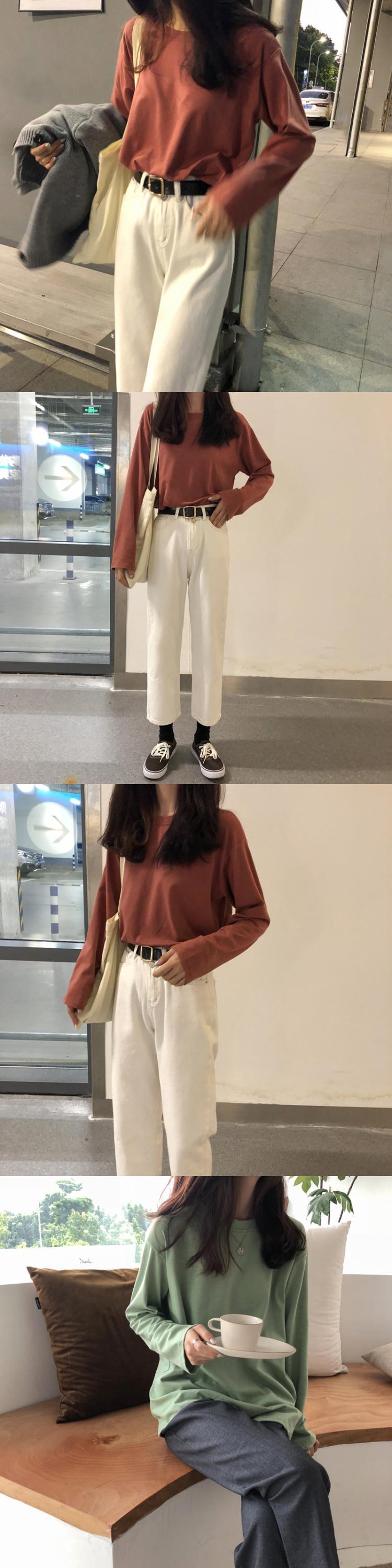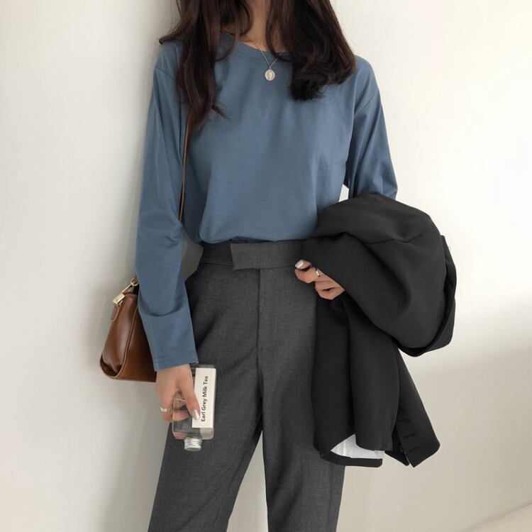 スプリングオータムルーズラウンドネックベーシックソリッド カラーTシャツ トップス レディース ロング 春物 秋物 Oネック ソリッドカラー misskkl14573908368