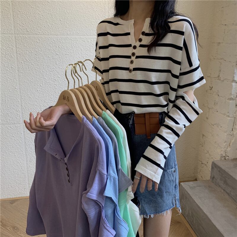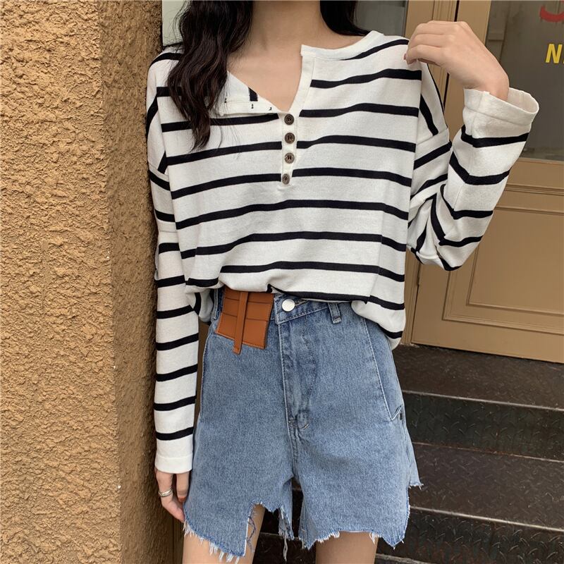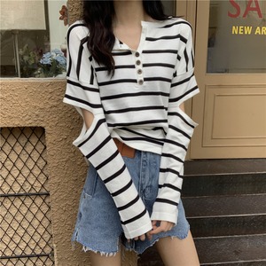 スプリングオータムルーズストライプセーター ブラウス ロング 春物 秋物 misskkl49310691322