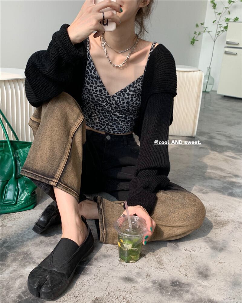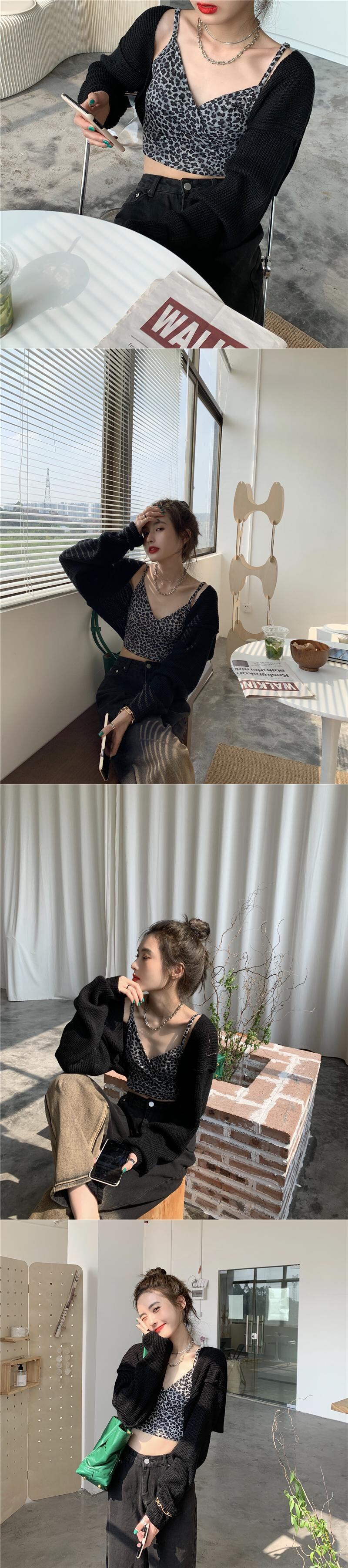 スプリングスリム薄手レオパードプリント柄Vネックトップス 春物 misskkl92216992645