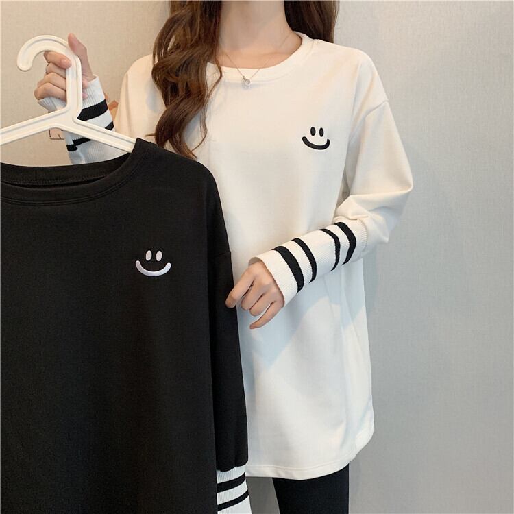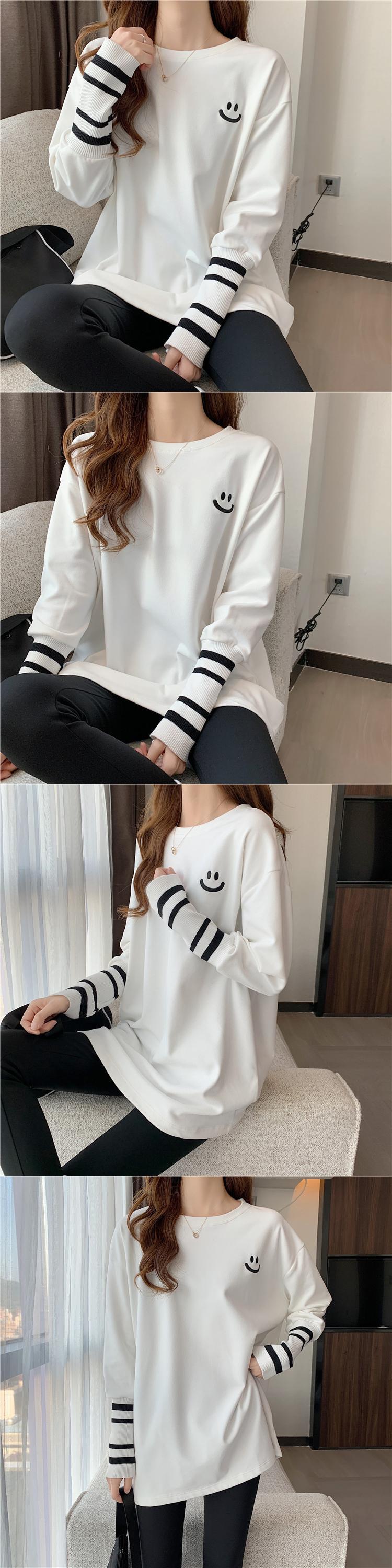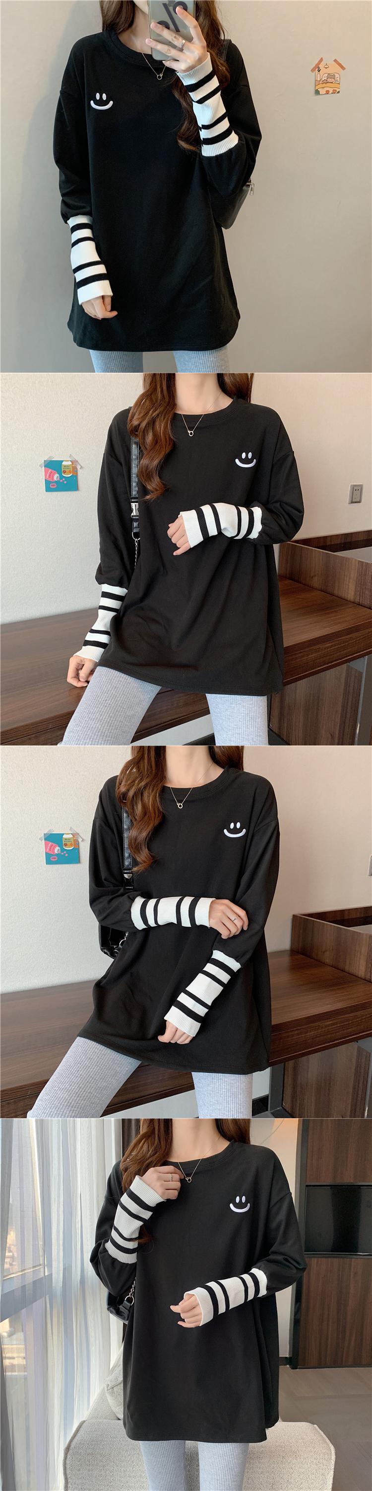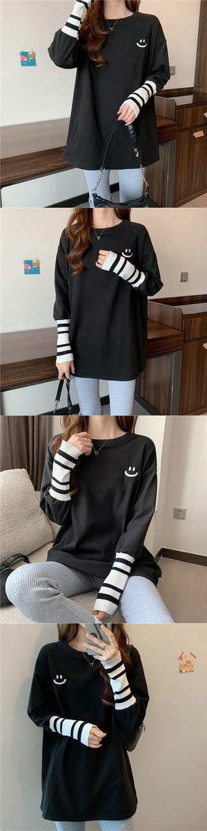 スプリングオータムルーズTシャツ トップス ロング レッド 刺繍 春物 秋物 misskkl47625364825