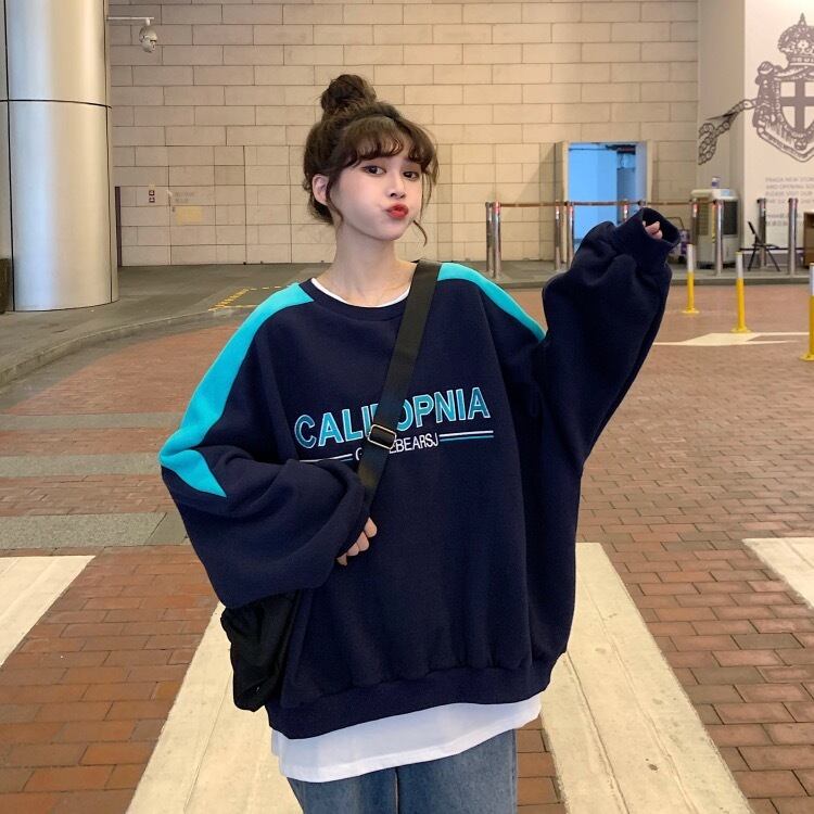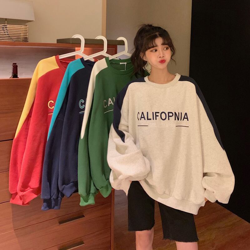 スプリングオータムカラープリントルーズセーター レディース ロング 大きめサイズ 春物 秋物 ステッチ misskkl22690429969