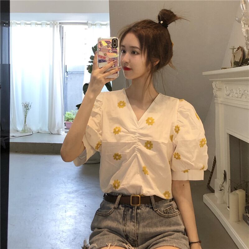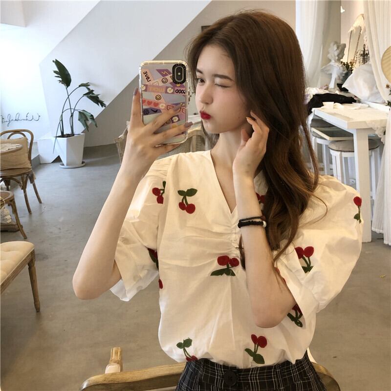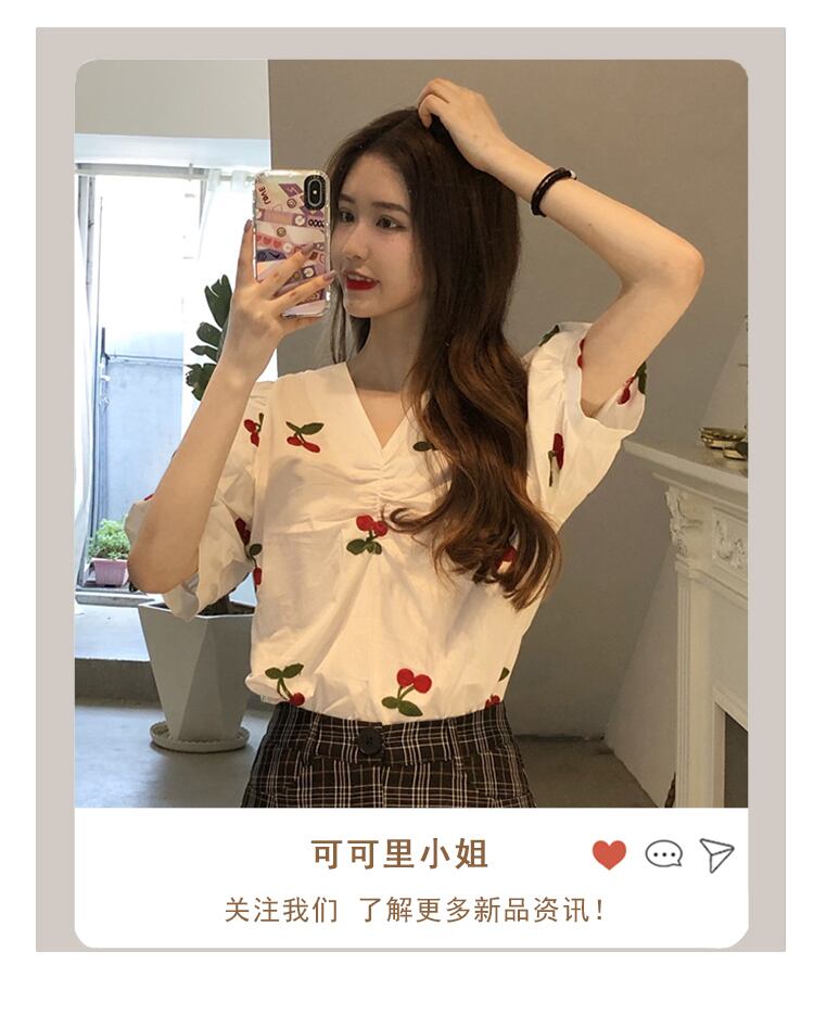 スプリングルーズVネック刺繍ショートシャツ トップス 春物 misskkl91474094583