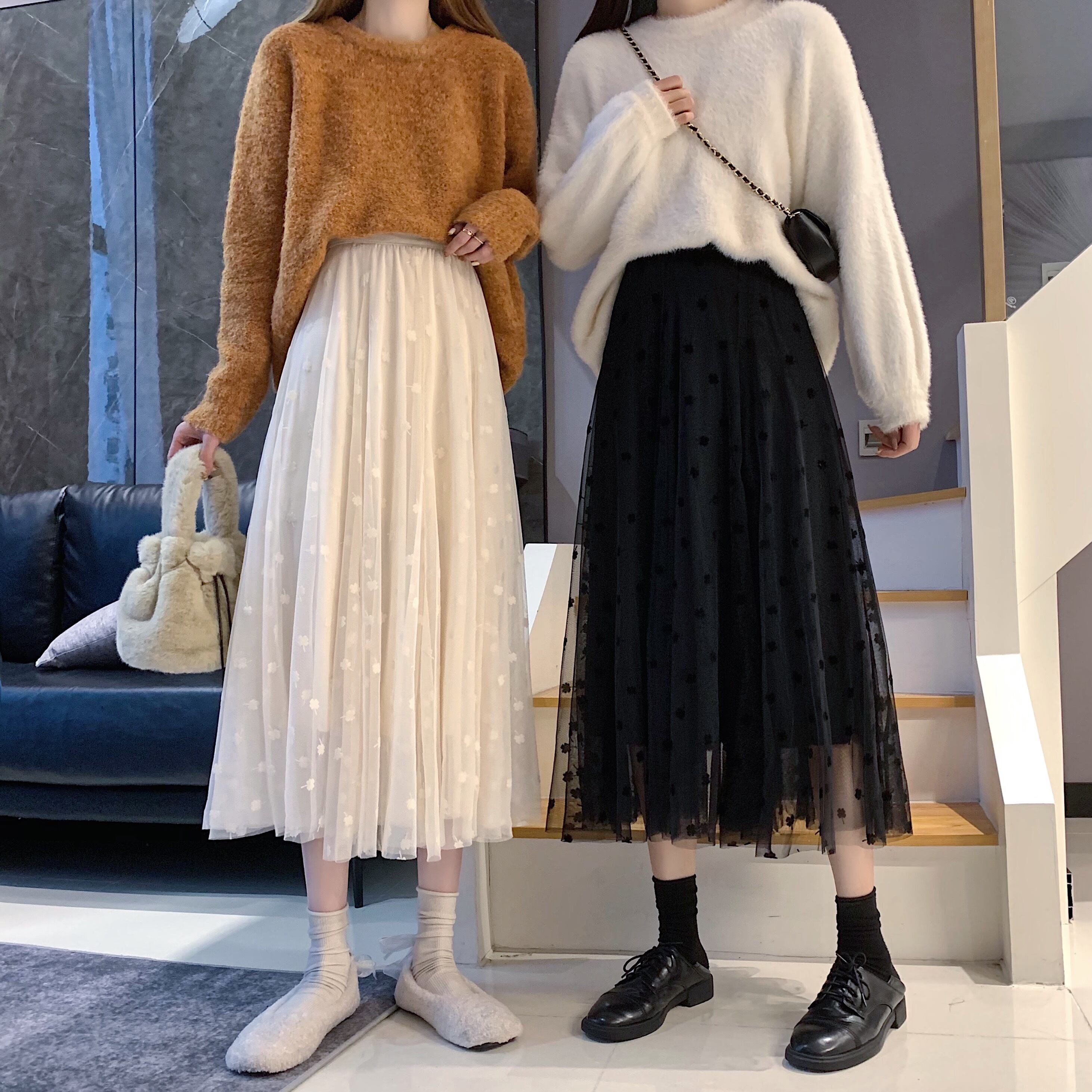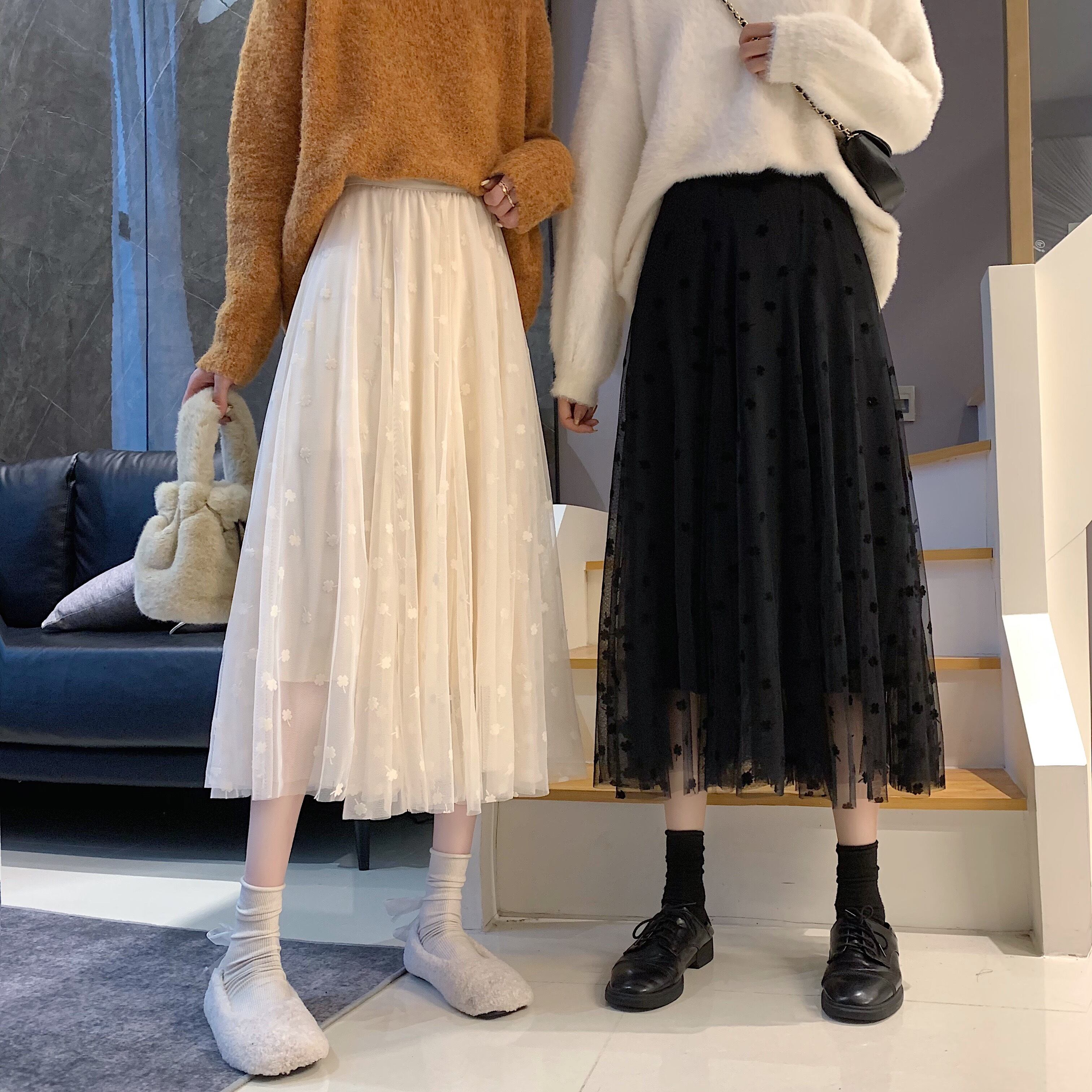 スプリングオータムスタイルハイウェストウェスト薄手メッシュスカート 春物 秋物 misskkl51865941649