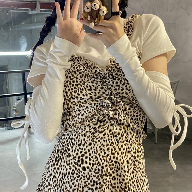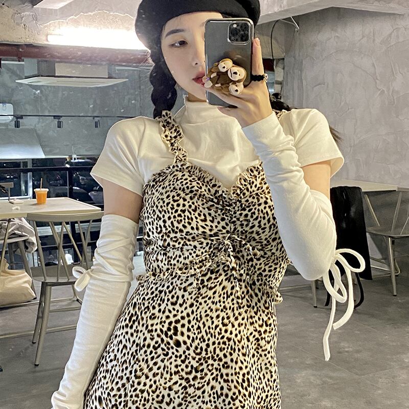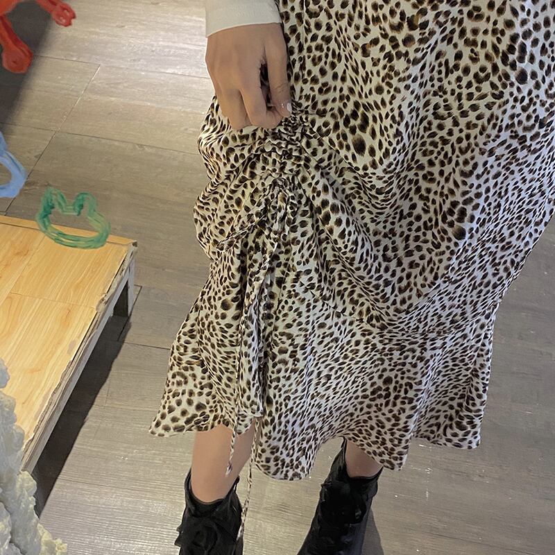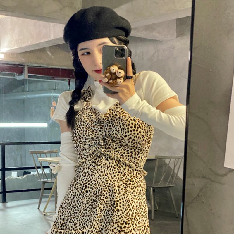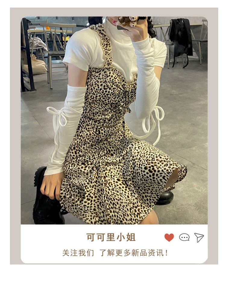 スプリングスタイルスリムギャザーレオパードプリント柄Vネックノースリーブドレス 春物 misskkl97067158408