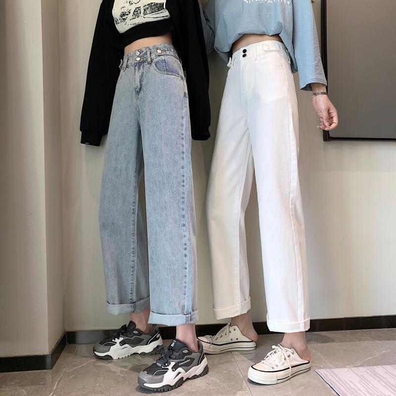 スプリングオータムハイウェストウェストルーズワイドレッグパンツ ボタンジーンズ レディース 春物 秋物 ワイドパンツ misskkl76821321555