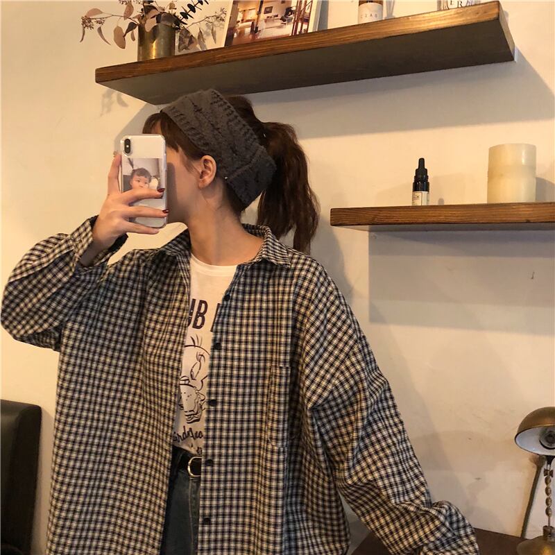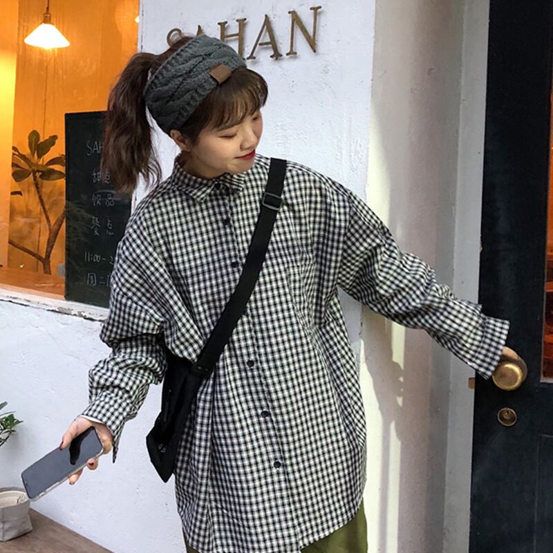 スプリングルーズカラー格子柄シャツ レディース ロング 春物 misskkl52101550798