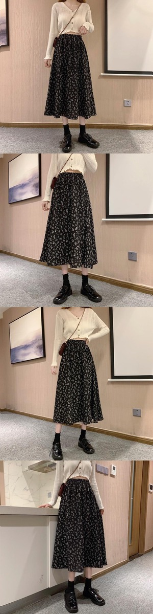 フローラルスカート スプリングオータムサマーシフォンハイウェストウェストAライン 春物 夏物 秋物 花柄 misskkl96315151960