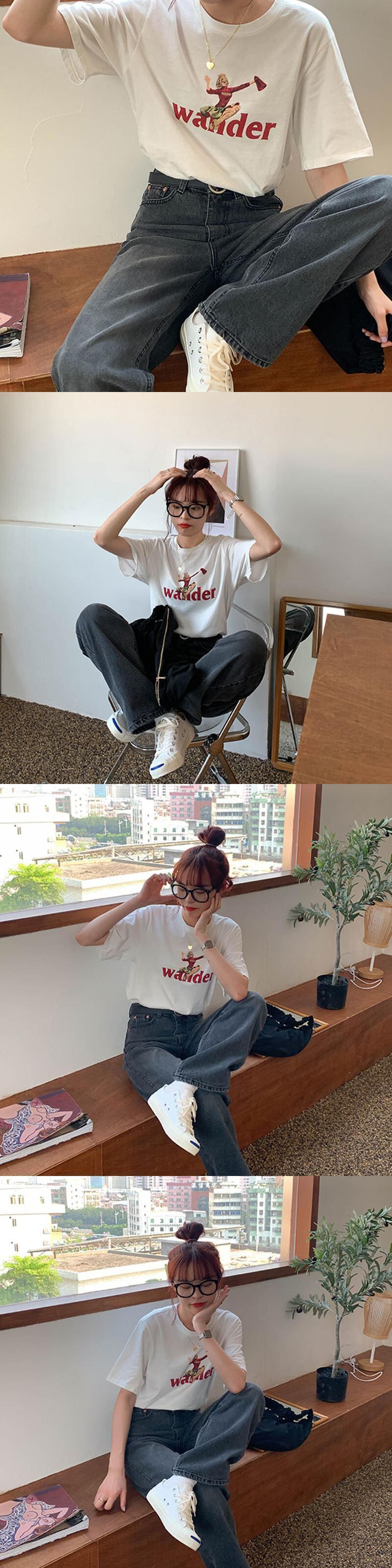 スプリングスリムプリントショート長袖スリーブTシャツ トップス レディース ロング 春物 misskkl83019073605