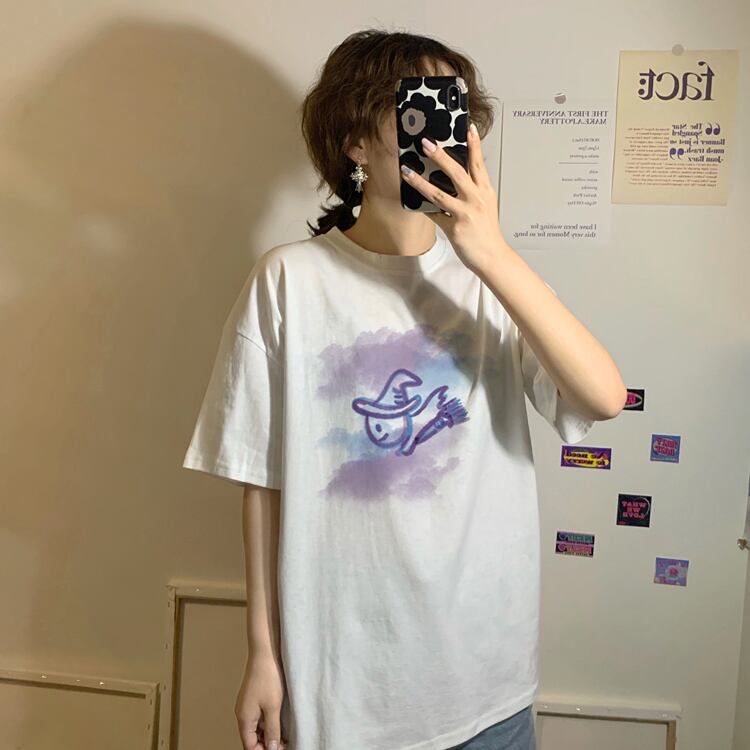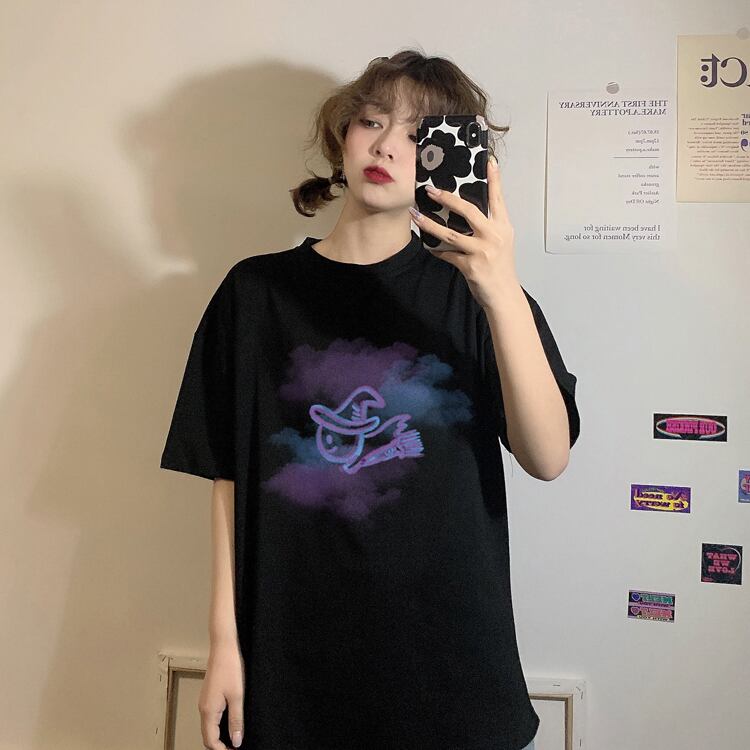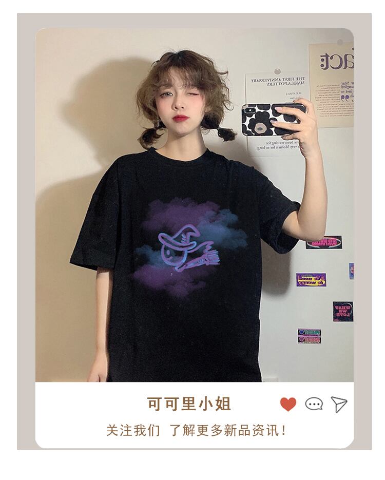 サマーダークプリント柄スタイルルーズTシャツ トップス かわいい 夏物 misskkl79718527600