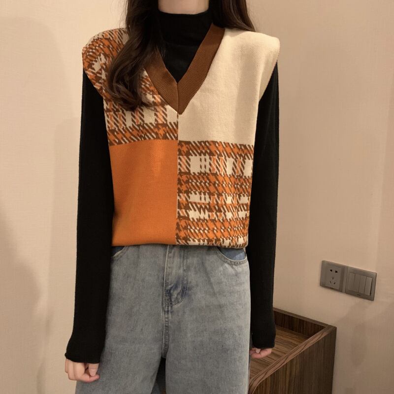 色:黒のベスト,オレンジ色のベスト,黒底シャツ,ホワイトボトミングシャツ